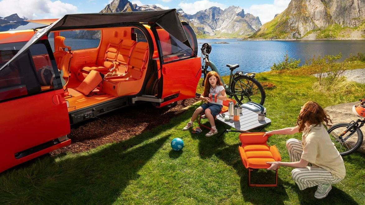 Iza vozača nalaze se dva skrivena sjedala koja se mogu preklopiti, dok drugi red čine tri zasebne, udobne fotelje koje se mogu izvaditi i koristiti na otvorenom. Ukupno šest sjedećih mjesta, ravna podnica i vrata koja se otvaraju suprotno jedna prema drugima dodatno naglašavaju prostornu fleksibilnost.