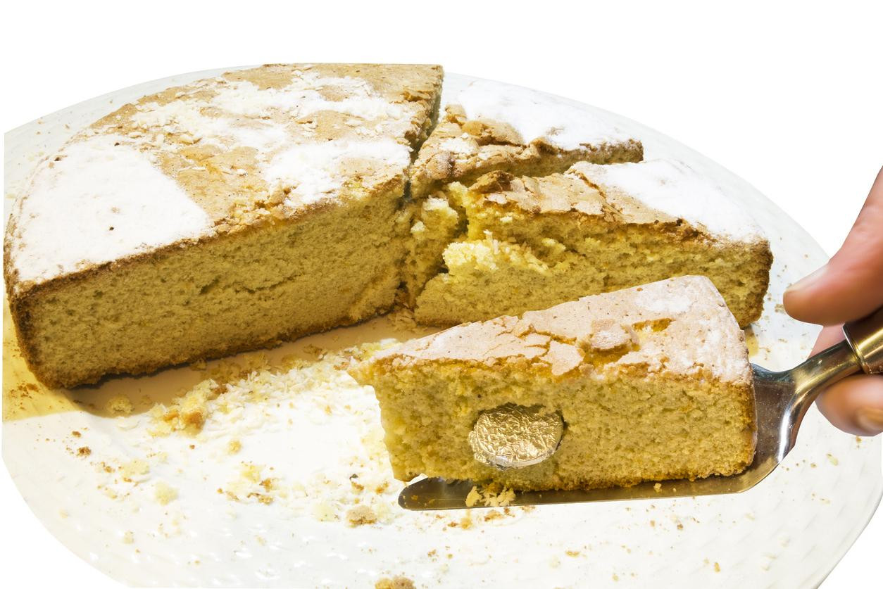 Okrugli kalup za torte promjera 25 cm namažite maslacem i pobrašnite. Ulijte smjesu u kalup i u nju nasumično stavite novčić. Pecite na gornjoj rešetki pećnice na temperaturi od 180 stupnjeva oko 45 minuta.