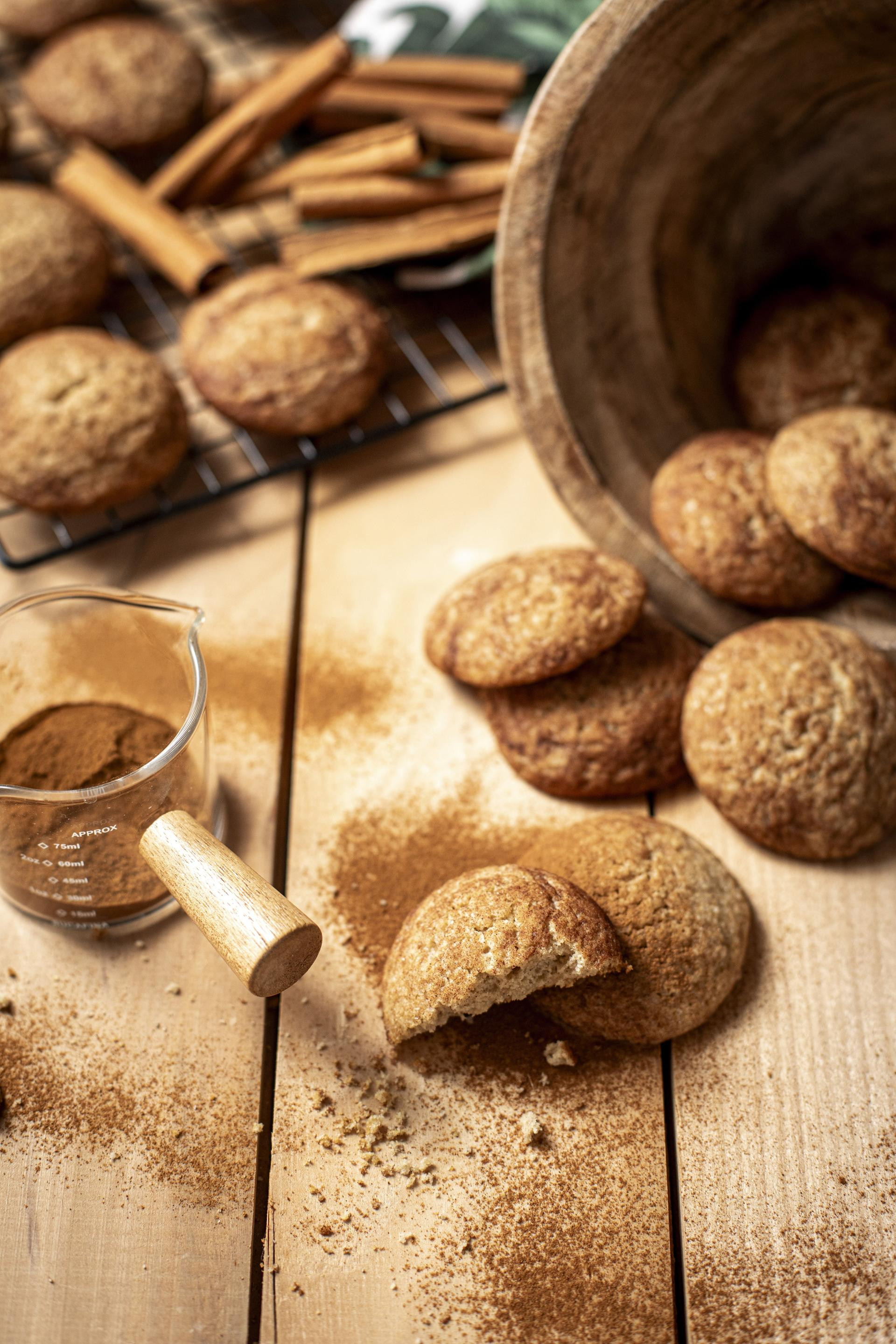 U posudu za miksanje stavite omekšali maslac i šećer, miješajte dok se sastojci ne povežu, točnije dok se šećer ne otopi. Zatim dodajte jedno po jedno jaje uz miješanje i ekstrakt vanilije. Kada ste dobili finu glatku smjesu, dodajte jedan po jedan suhi sastojak. Na kraju trebate dobiti polutvrdu smjesu. Posudu stavite u hladnjak dok ne pripremite posip i lim za pečenje. U manju zdjelicu stavite šećer i cimet, dobro promiješajte i ostavite sa strane. Veliki lim za pečenje obložite papirom za pečenje. Tijesto izvadite iz hladnjaka te ga uz pomoć male žličice vadite i rukama oblikujte u male kuglice, pa ih uvaljajte u mješavinu cimeta i šećera. Stavljajte ih na pripremljeni lim za pečenje s razmakom od najmanje 2 centimetra jer će se prilikom pečenja tijesto širiti. Pecite 8-10 minuta na temperaturi od 190 stupnjeva. Ostavite da se keksi na limu hlade oko 5 minuta, zatim ih prebacite na rešetku za hlađenje.