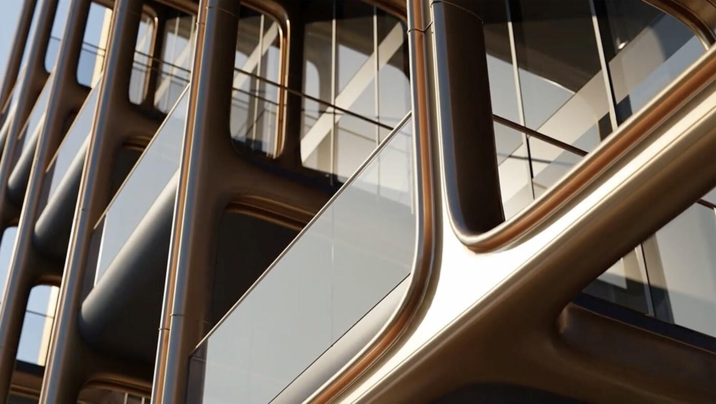 Inspiracija za takav pristup pronađena je u bogatom nasljeđu emiratskih zanata, posebno tehnikama Al Sadu i Talli. Te metode tkanja metalnim i pamučnim nitima, prepoznatljive po geometrijskim uzorcima i trodimenzionalnim reljefima, prenesene su na fasadu u suvremenom obliku. Arhitekti iz londonskog studija Zaha Hadid Architects željeli su fasadu koja kroz dan živi svoj ritam i zato je egzoskelet oblikovan tako da se njegov izgled mijenja kako sunce prelazi nebom – nijanse se produbljuju, sjene se pomiču, a čitava zgrada poprima gotovo kinetički dojam.