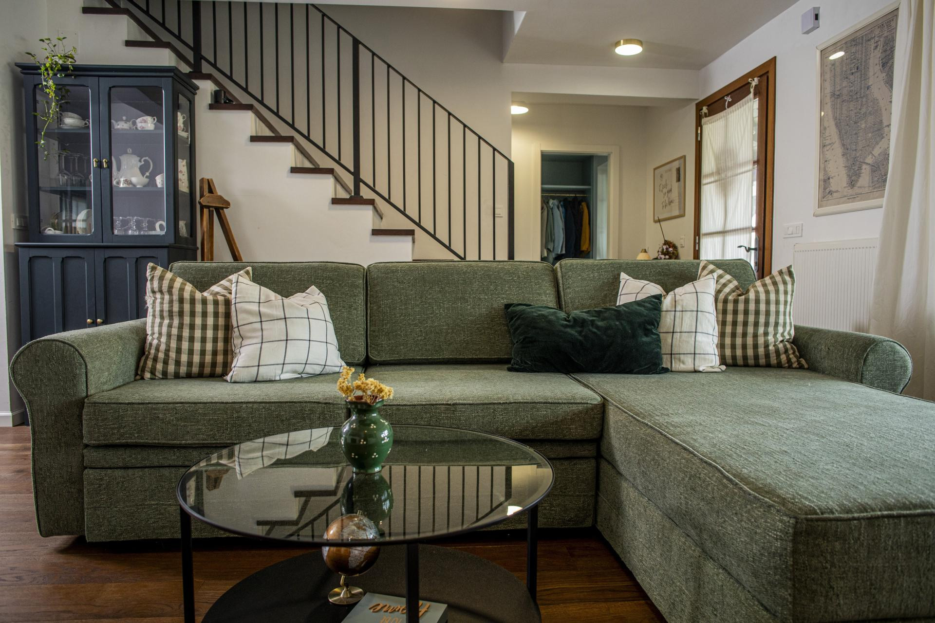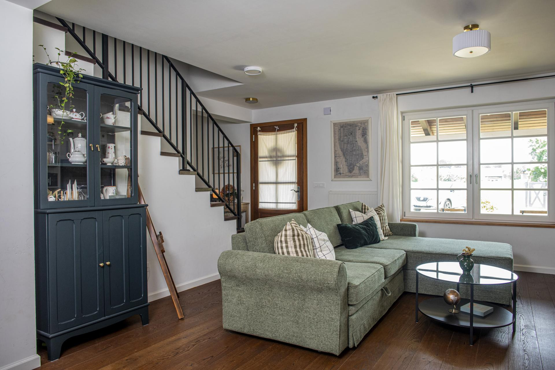 - Open space je specifičan jer je u centru veliko stepenište koje dijeli dnevni boravak od ostalih soba, a na taj način smo izbjegli predsoblje i tipičan hodnik. Također mislim da je upečatljiv blagovaonski stol dužine 2,5 m od 4 stare hrastove grede te bijela velika kuhinja koja se proteže na 3 zida. Sadrži i ormar od poda do stropa u koji smo sakrili aparate i ugradili pećnicu. U svakoj prostoriji nalazi se neki namještaj po mjeri ili komad koji sam sama izradila, a trenutno unosimo i neke življe boje i izrađujemo još neke ormare po mjeri. Obzirom da gotovo sve radim sama, proces ipak još traje - kaže Mirna i nastavlja kako u kući prevladavaju drvo i MDF (od materijala) te tamnosmeđa boja s nekim nijansama zelene (od kolorita).