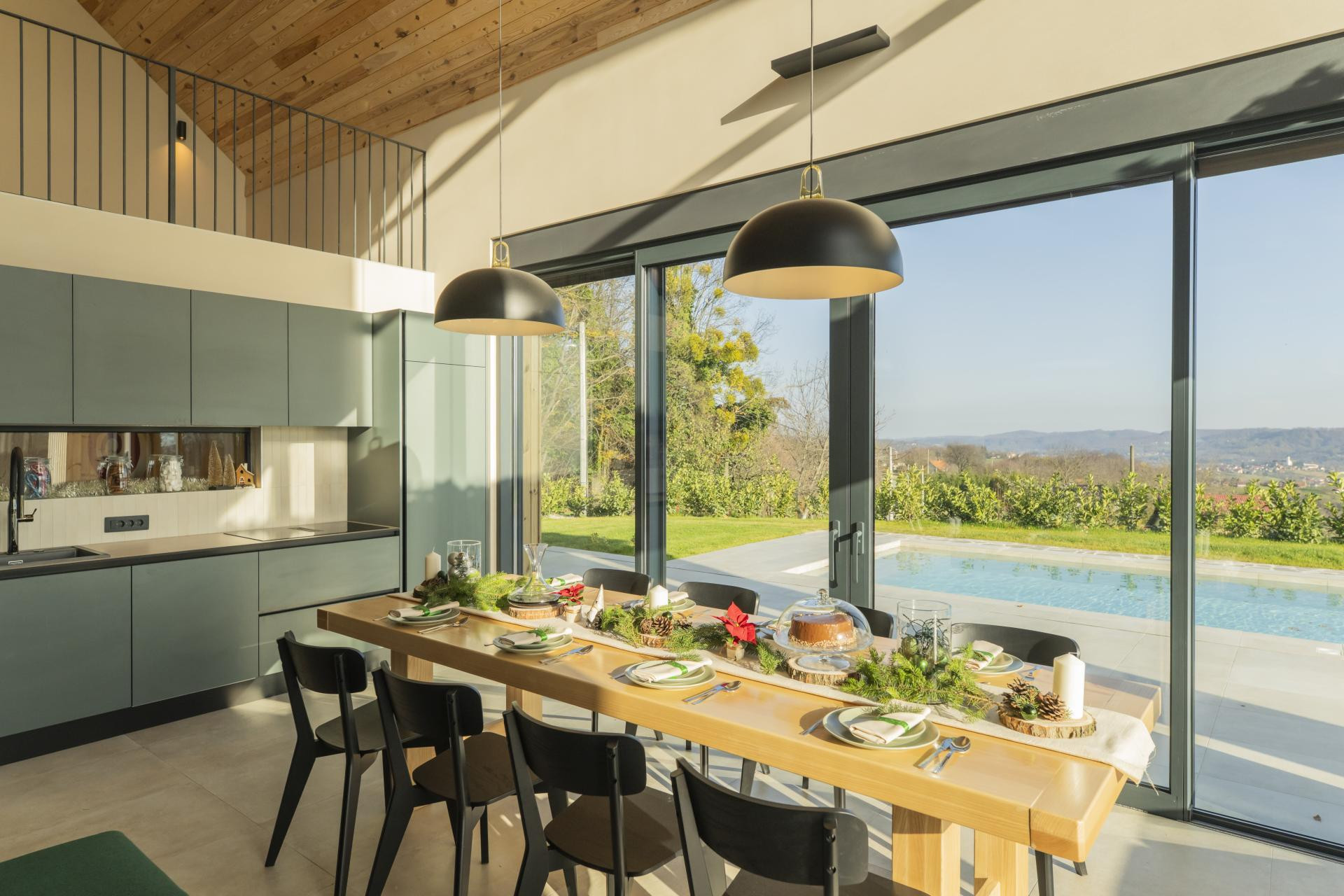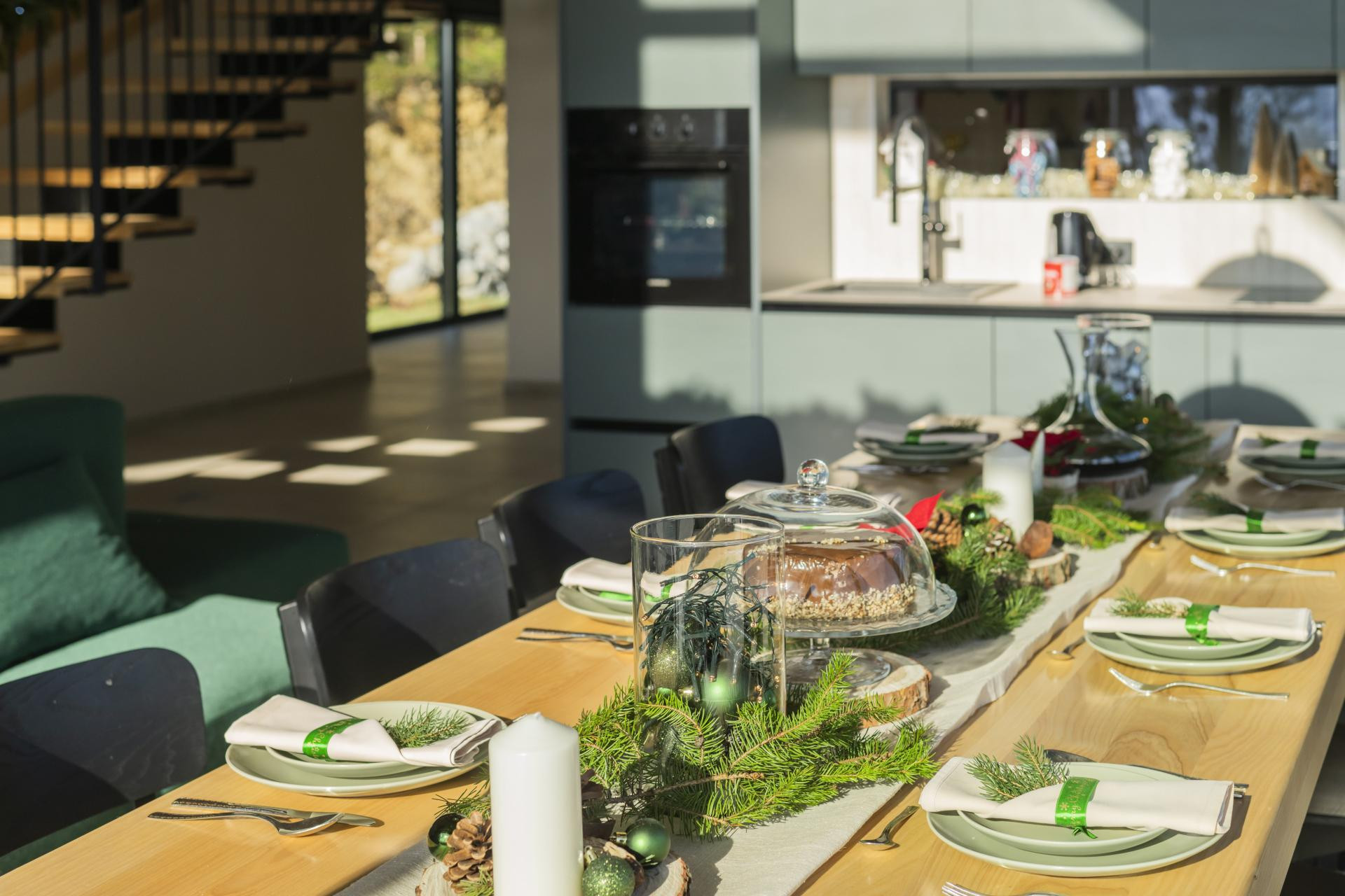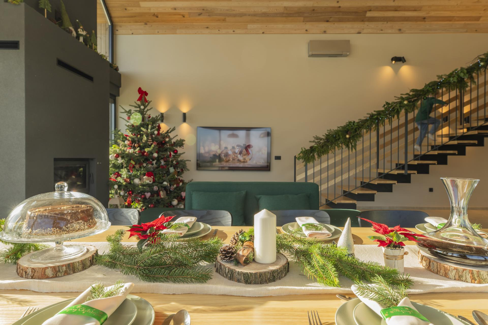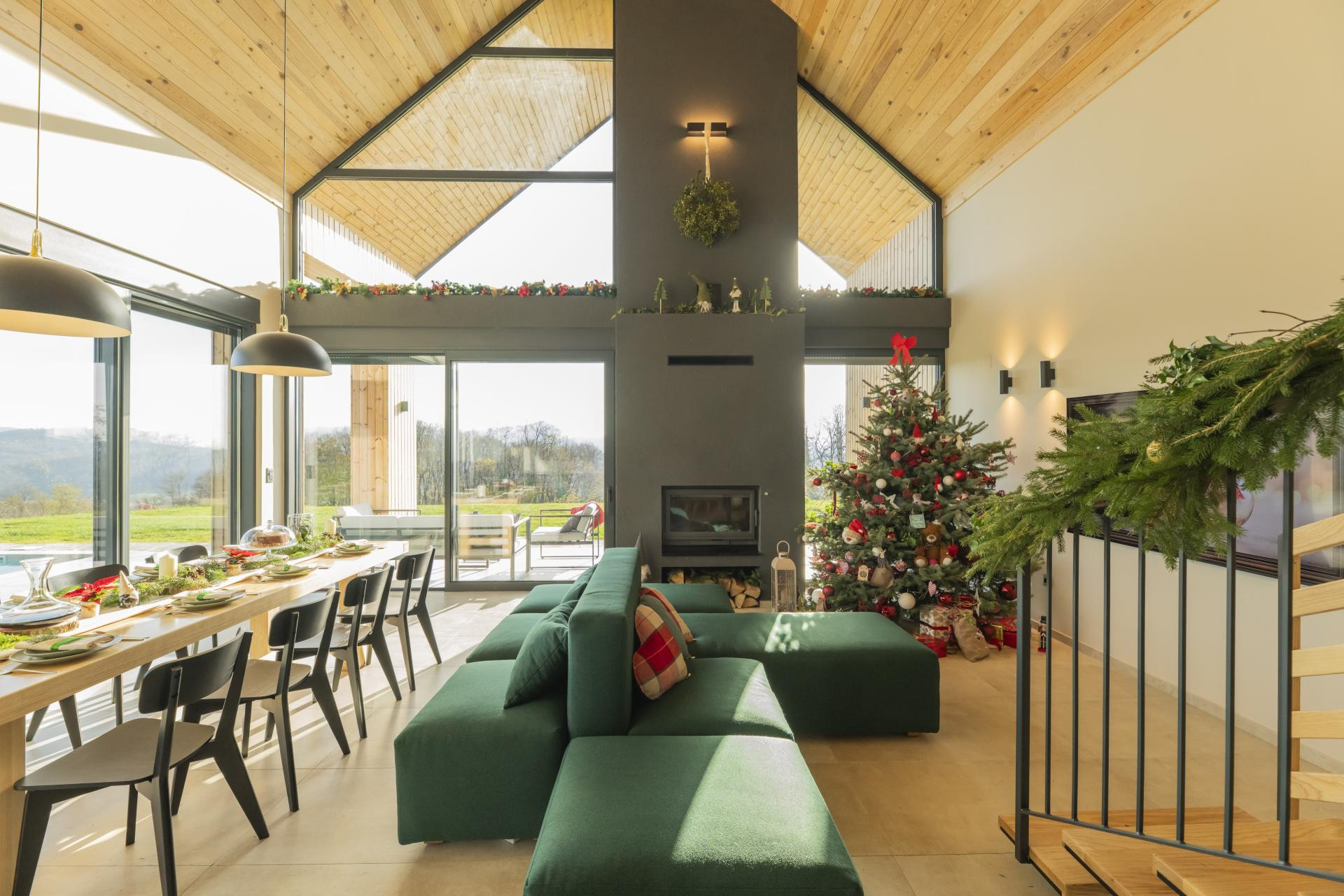 U ovo doba godine, dok su interijer i eksterijer obučeni u tople božićne tonove, atmosfera moderne seoske kuće posebno dolazi do izražaja.