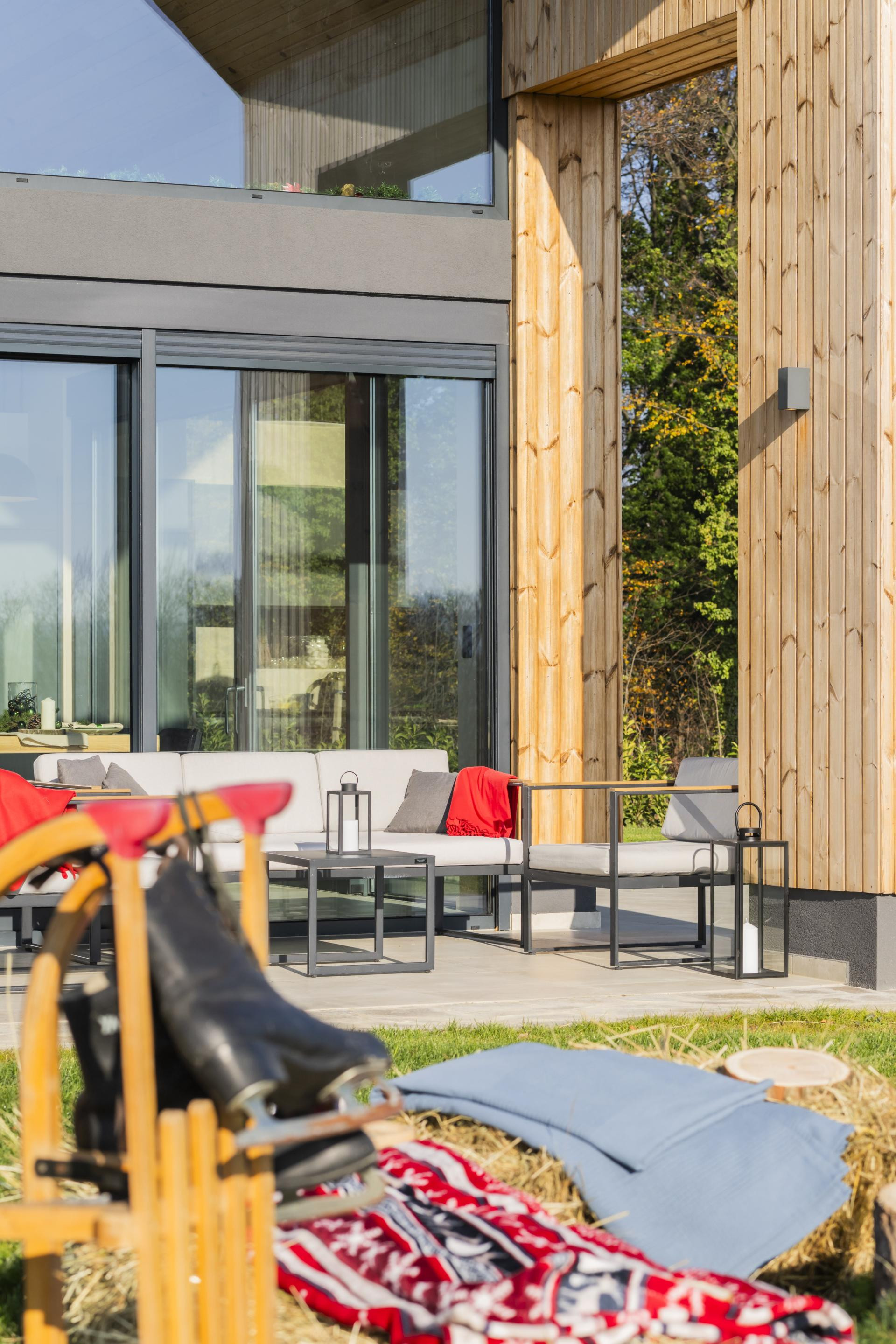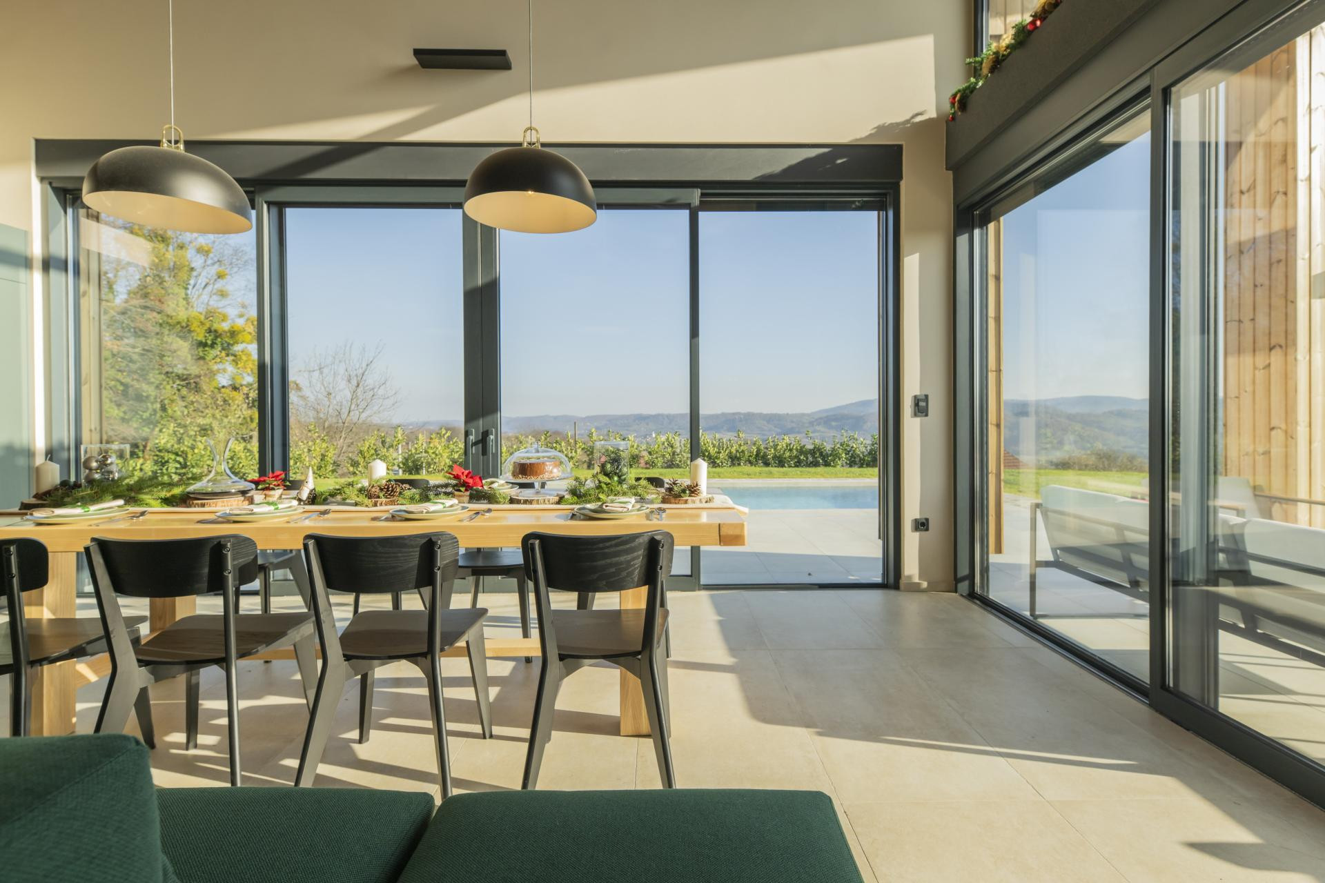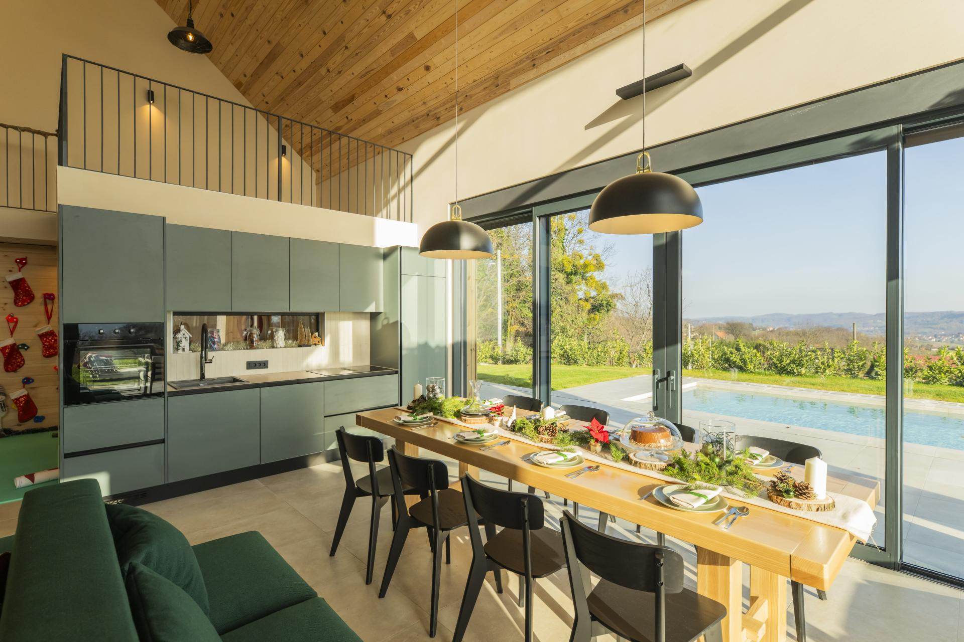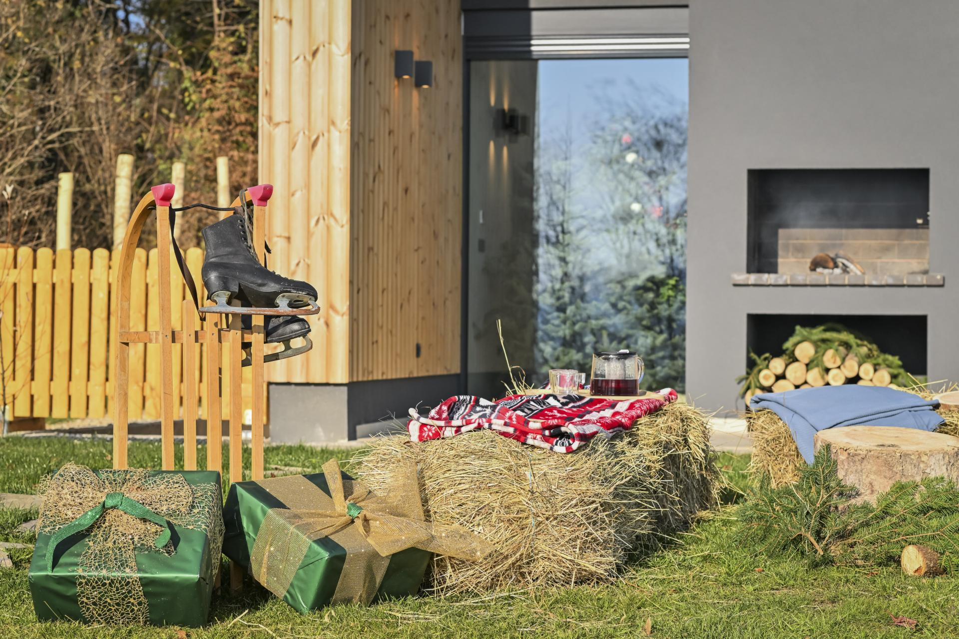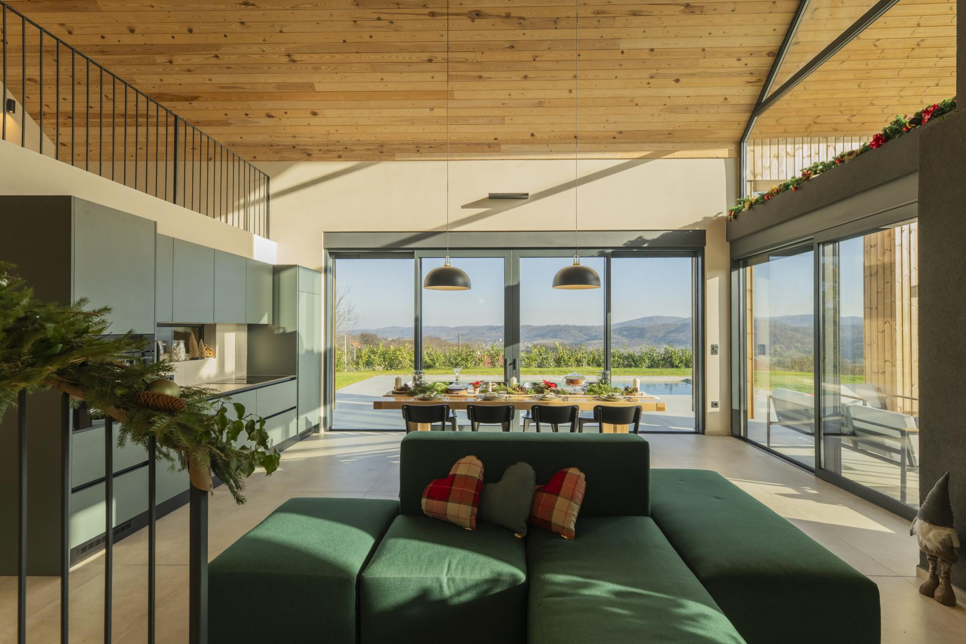 U ovo doba godine, dok su interijer i eksterijer obučeni u tople božićne tonove, atmosfera moderne seoske kuće posebno dolazi do izražaja.