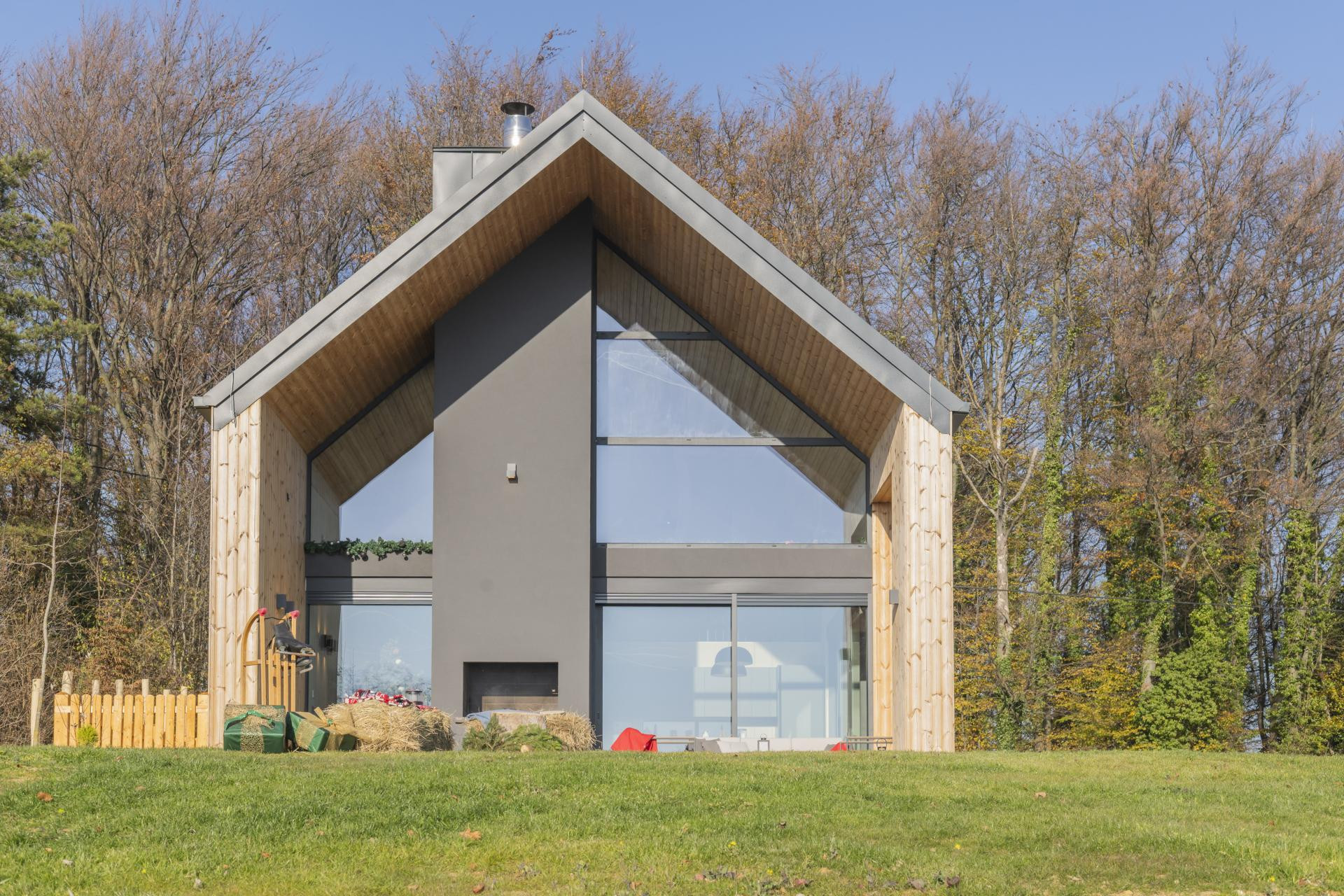 Kuća je građena kao moderna reinterpretacija tradicionalne "barn" arhitekture. Drvo je dominantan element i konstrukcijski i vizualno, a u kombinaciji s antracitom i velikim staklenim površinama dobiven je izgled koji spaja suvremeno i prirodno.