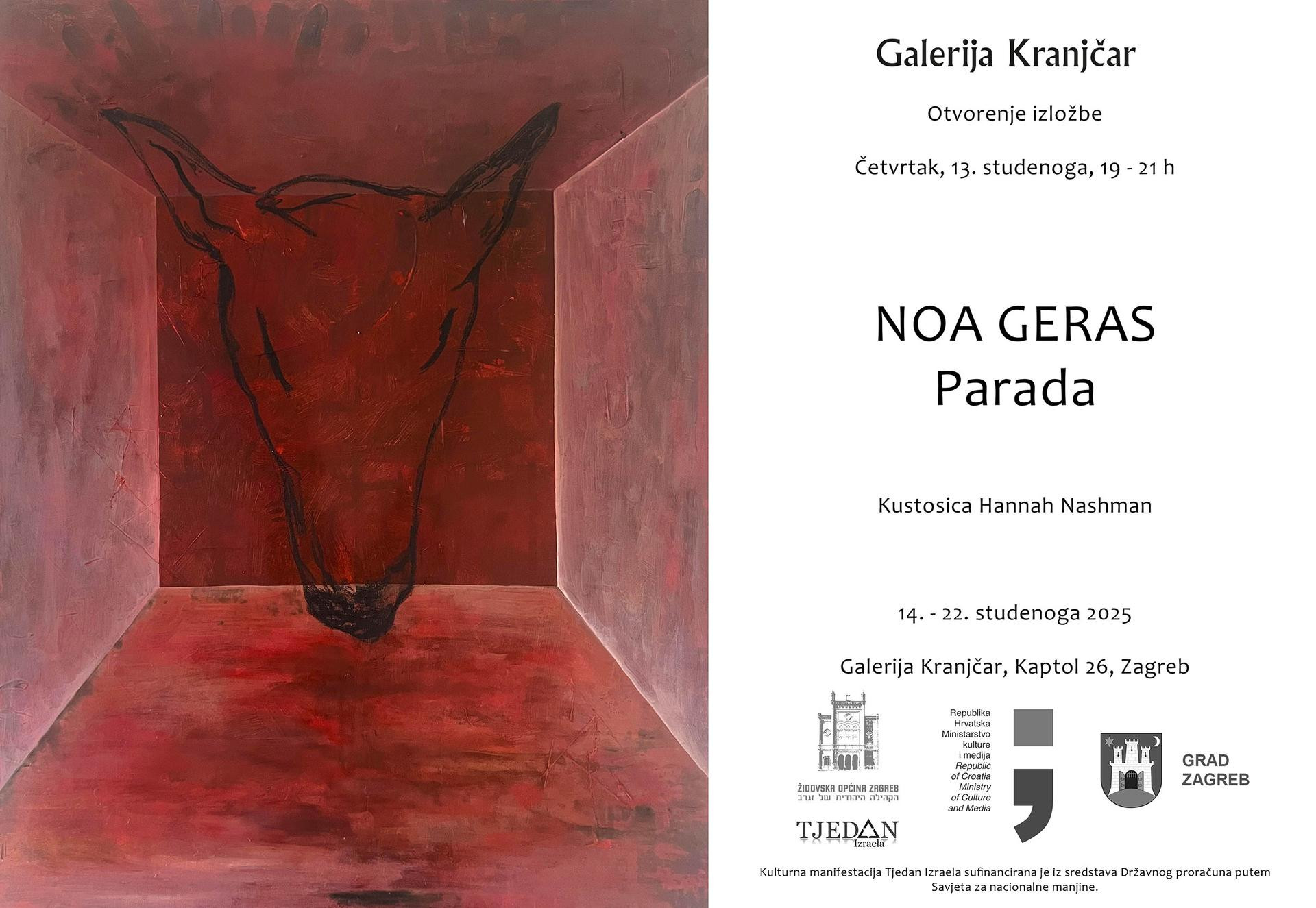 U Galeriji Kranjčar 13. studenog otvara se izložba mlade umjetnice Noe Geras (29) pod nazivom "Parada". Noa je rođena u Jeruzalemu, a većinu svog života stvara na dvije adrese - u Zagrebu i Londonu. Završila je kiparstvo na zagrebačkoj Akademiji likovnih umjetnosti, a magistrirala studij računalnih umjetnosti na londonskom Goldsmithsu. Njezin umjetnički jezik spaja kiparstvo, slikarstvo i digitalne medije, a u samom središtu njezine prakse nalaze se odnosi između čovjeka i onoga što ona naziva "Drugim" - nečim različitim, neuhvatljivim, ponekad i prijetećim...