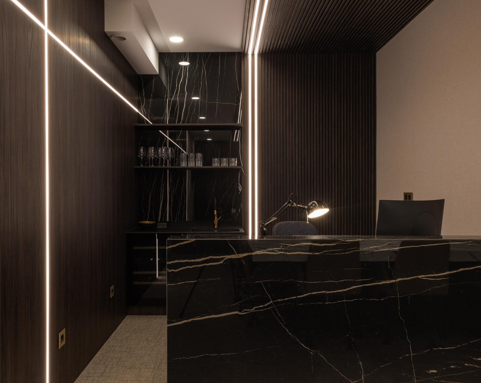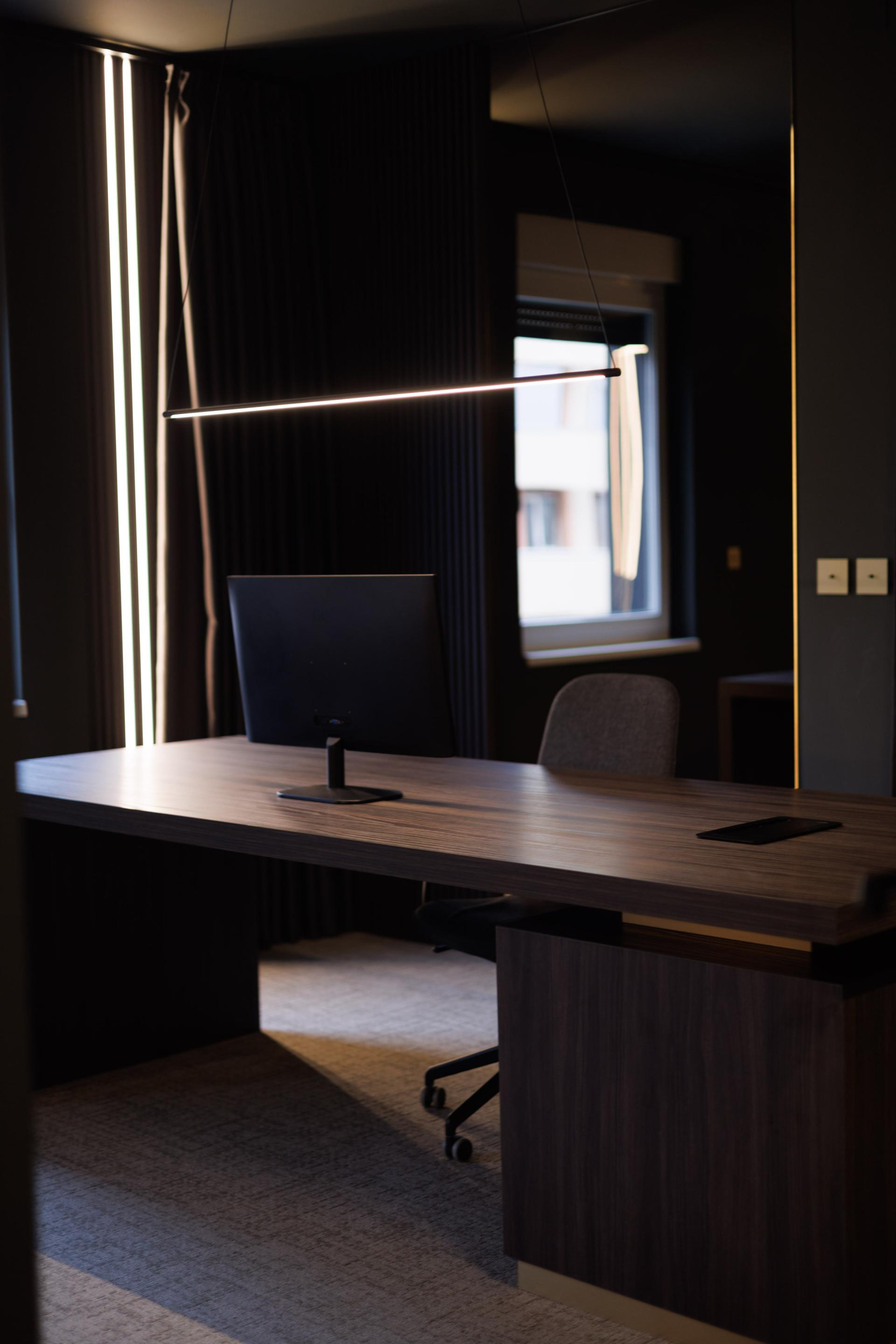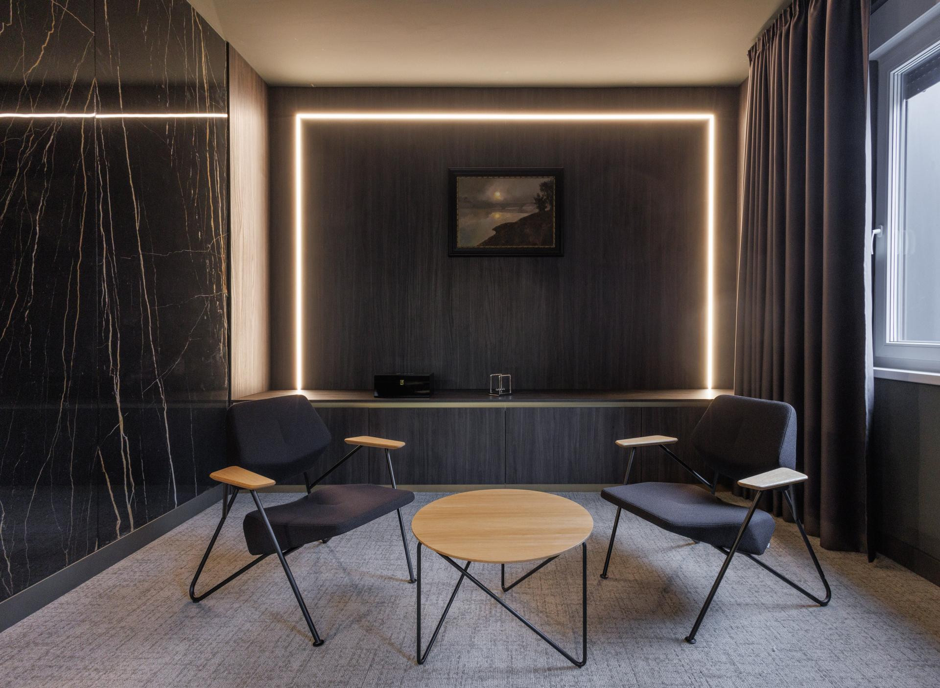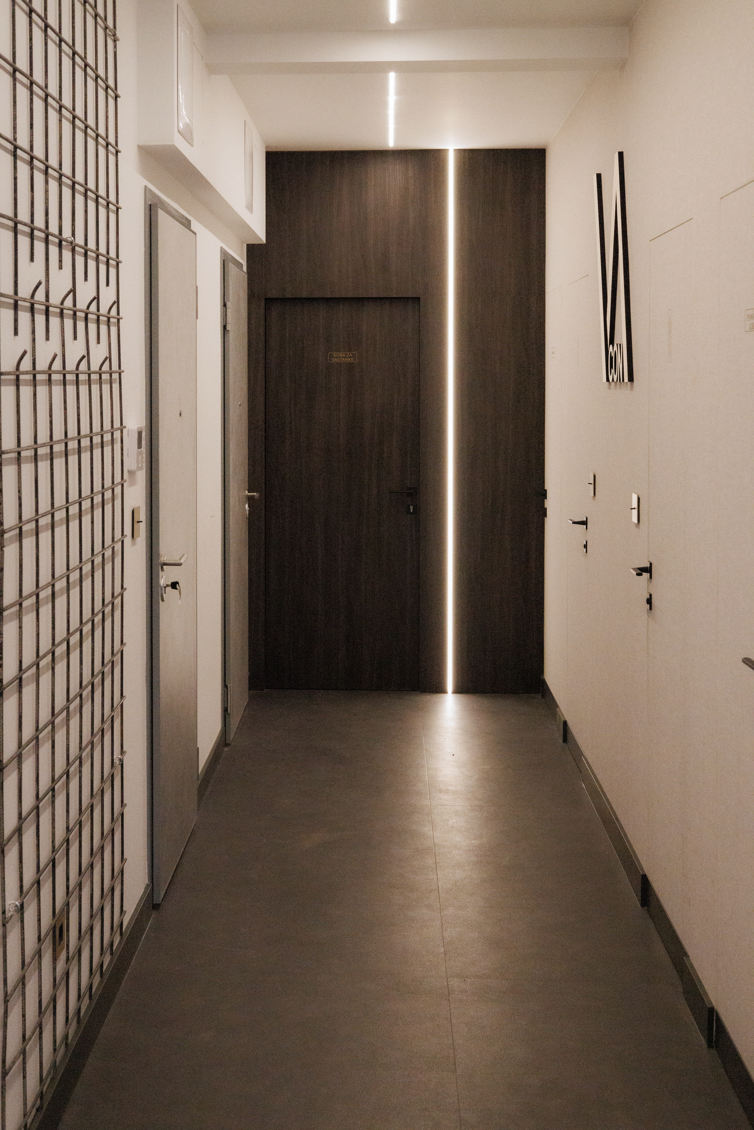 "Moram napomenuti da je svaki detalj u prostoru rađen po mjeri. Custom made namještaj, ogledala i stakleni elementi, rasvjeta, personalizirani prekidači, vješalice izrađene od armaturne mreže - sve to čini razliku. Željela sam prostor koji je ozbiljan, ali ne hladan. Snažan, ali ne mračan. Moderan, ali ne agresivan. Prostor koji će zaposlenicima pružiti osjećaj pripadnosti i profesionalnosti, ali i ambijent u kojem žele ostati", napominje dizajnerica.