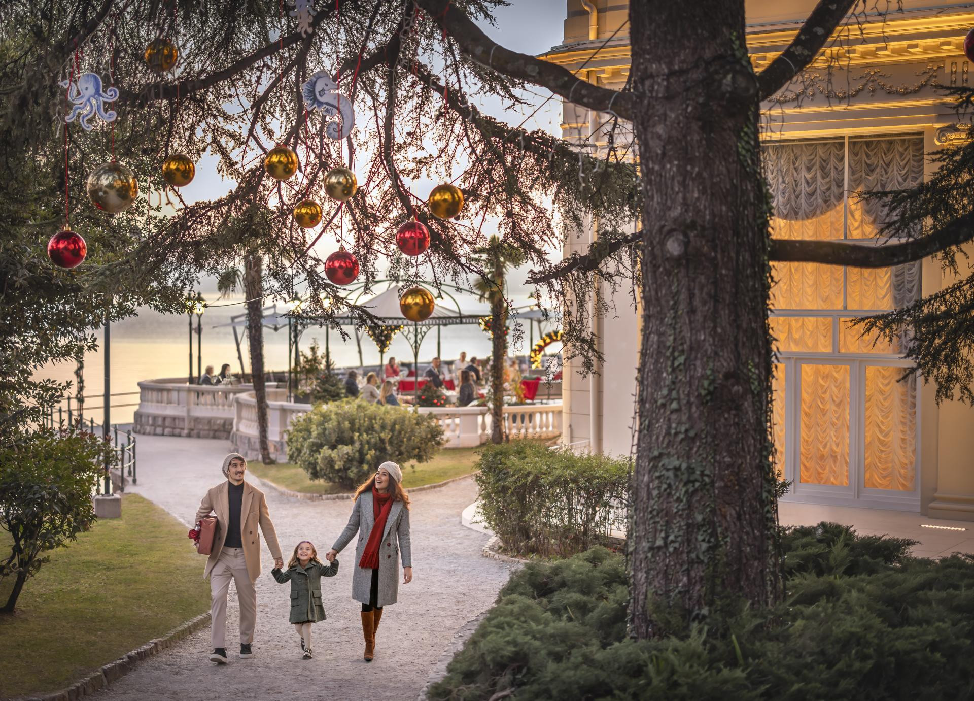 Put Lungomareom pod romantičnim svjetlima vodi do parka Angiolina gdje su se smjestili divovski orašari, a veličanstvena Villa Angiolina očarat će djecu i odrasle, baš kao i Raspjevani patuljci, Švicarska kuća nalik bajci o Ivici i Marici te Čarobna bukva koja izgleda kao prizor iz najljepših priča o zimskim čudima. Advent u Opatiji donosi i brojne predstave, klizalište, koncerte, radionice, izložbe te autentične eno-gastro doživljaje koji spajaju domaću tradiciju i suvremeni pristup gastronomiji. Svaki dan ispunjen je programom, događanjima i okupljanjima – grad vibrira energijom radosti i slavlja.