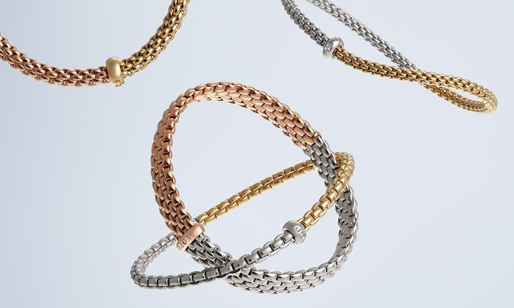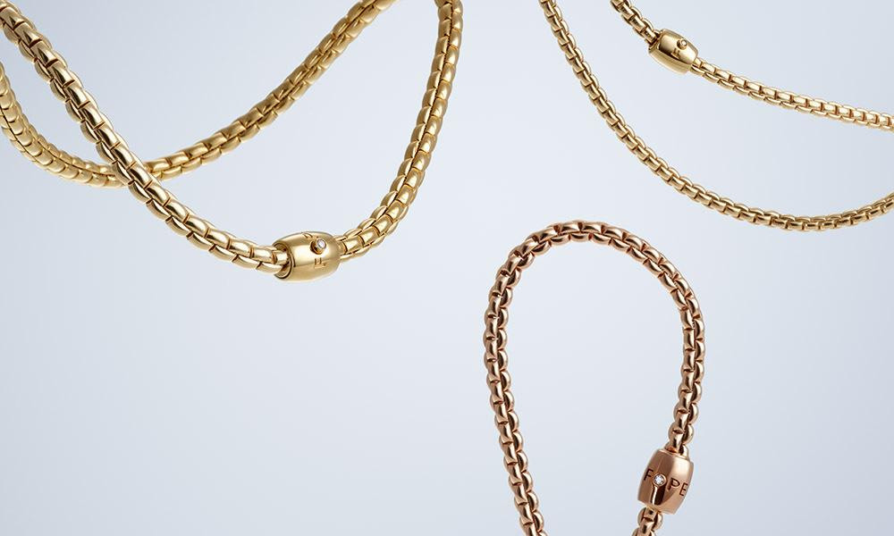 Tajna privlačnosti ovog nakita mogla bi se skrivati u prepoznatljivom stilu inspiriranom ‘‘zrnom‘‘ iz kojeg je nastao FOPE ikonični plet te ekskluzivna patentirana tehnologija Flex‘it. Kolekcije uključuju ogrlice, narukvice i prstenja koji su savršene nadopune našim kombinacijama u obiteljskim i poslovnim blagdanskim okupljanjima pa sve do proslava u najluđoj noći!