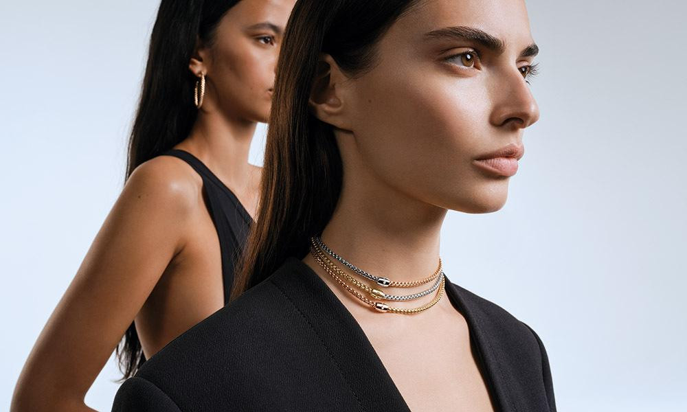 Primjerice, kolekcija Eka Flex’it odiše smjelom i svestranom privlačnošću, a vidimo je na modno osviještenim vlasnicima koji svoje kombinacije žele naglasiti na diskretniji, ali samopouzdan način. Zlatni elementi su umjetnički isprepleteni, a ogrlice su mekane i elastične, dodatno naglašene dijamantnom kopčom D-click.