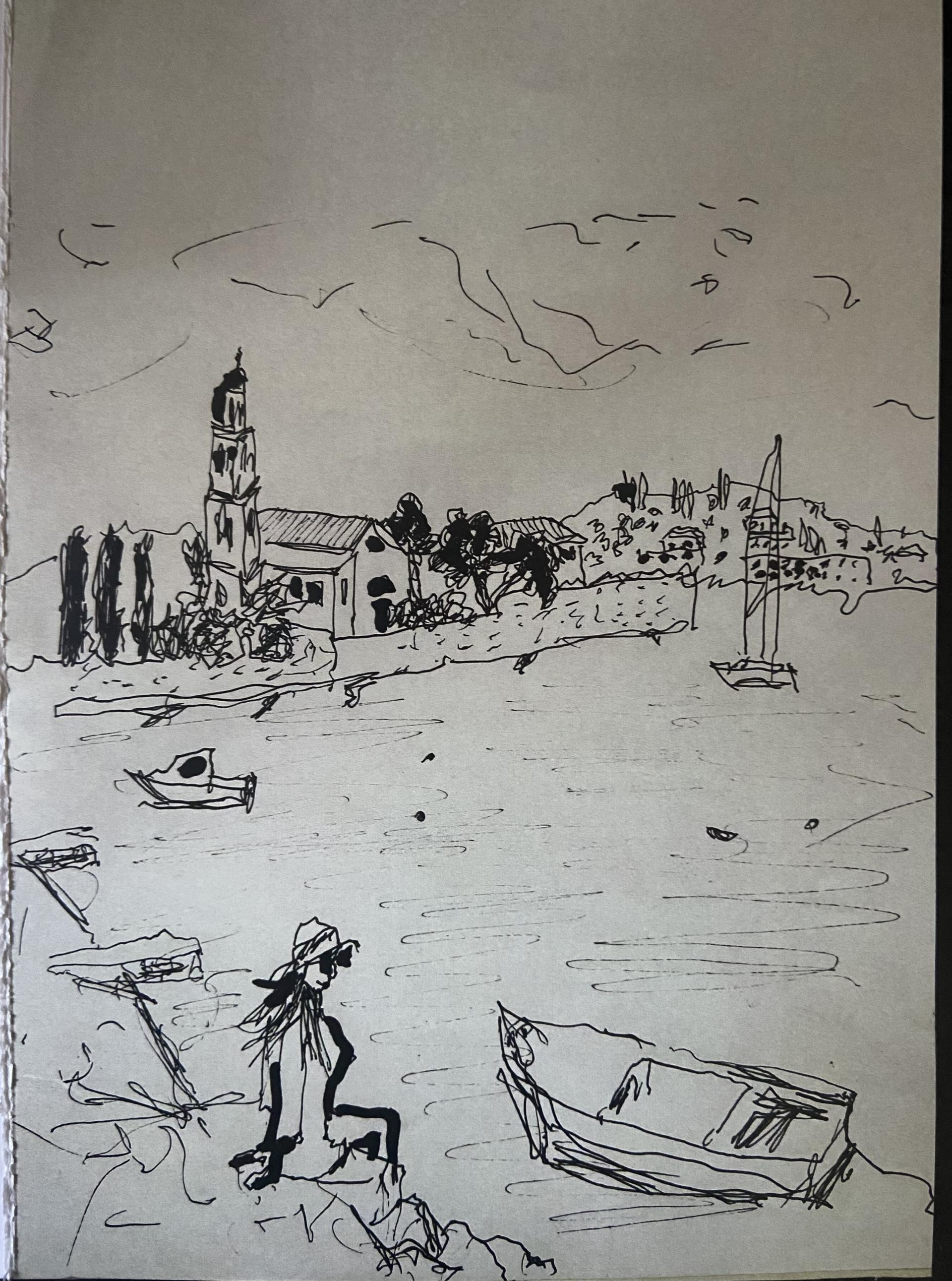 Uz očekivane motive Grada, poput Dubrovačkih zidina, kula, krovova, Straduna, Orlandova stupa, ubacuje čemprese, mačke, pse, ljude… Potez mu je hitar, živ, spontan, izražava se mrljama i linijama, reagira u trenutku. Ima u tom njegovu pristupu i svojevrsna veza s novinarskim pozivom. Također, osjeća se u tim crtežima ljubav prema Gradu, ipak je on fetivi Dubrovčanin; prikazuje ga uglavnom ljeti, okupanog suncem u žutim i narančastim tonovima koje suprotstavlja plavetnilu mora i zelenilu biljaka.