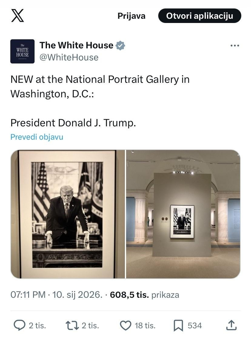 Nacionalna galerija portreta objavila je u priopćenju da je u četvrtak postavila novu fotografiju Trumpa i da započinje planirano ažuriranje izložbe "Predsjednici Amerike".