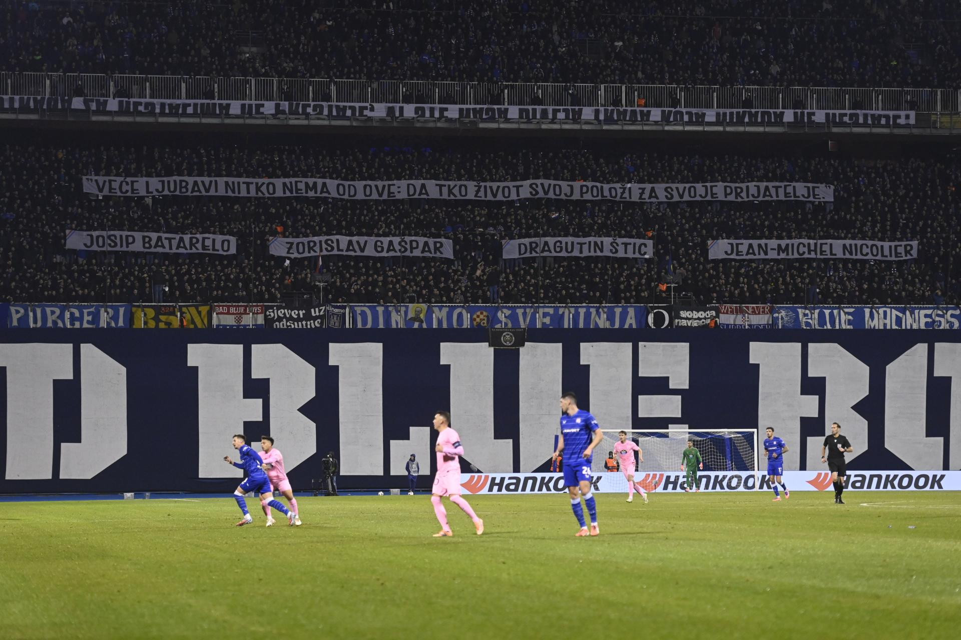 Bad Blue Boysi su transparentom na sjevernoj tribini na utakmici Europske lige između Dinama i Celte Vigo odali počast braniteljima.