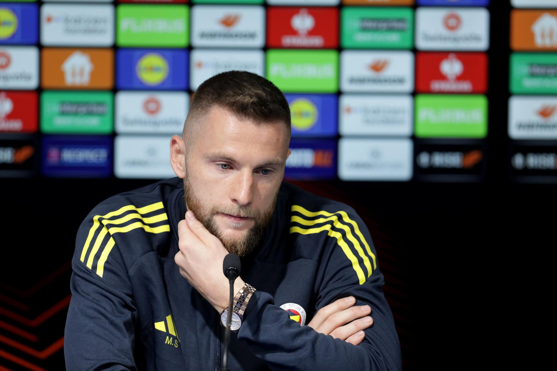 Turci su zbog kašnjenja leta, kasnili i na konferenciju za medije na maksimirskom stadionu nakon što su trening odradili u svom kampu u Istanbulu, ali su potom na press konferenciju stigli trener Domenico Tedesco i slovački stoper Milan Škriniar.