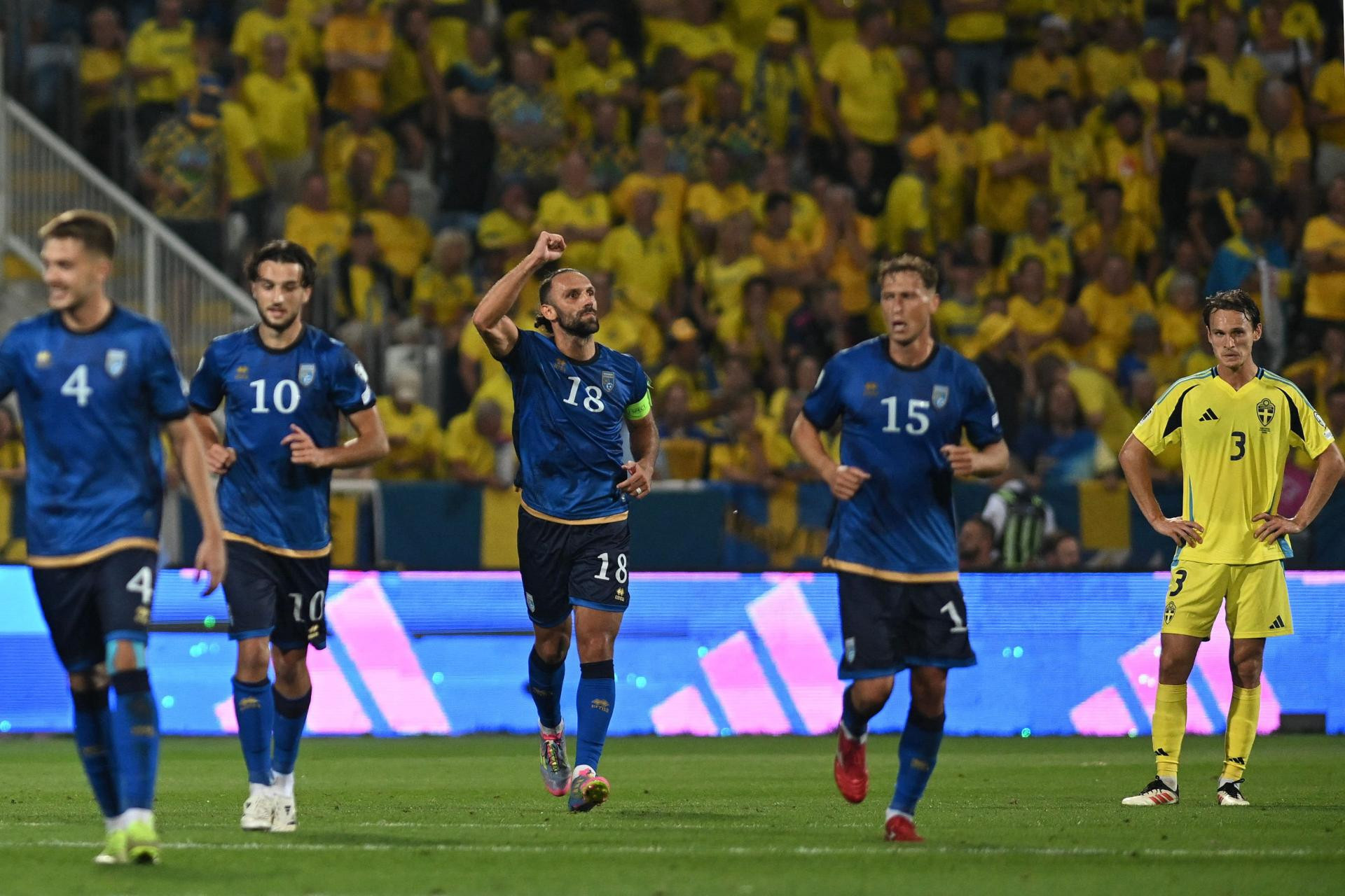 U drugom dvoboju u toj skupini Kosovo je iznenađujuće u Prištini svladalo Švedsku s 2-0 golovima Rexhbecaja (26) i Muriqija (42) te je izbilo na drugo mjesto.