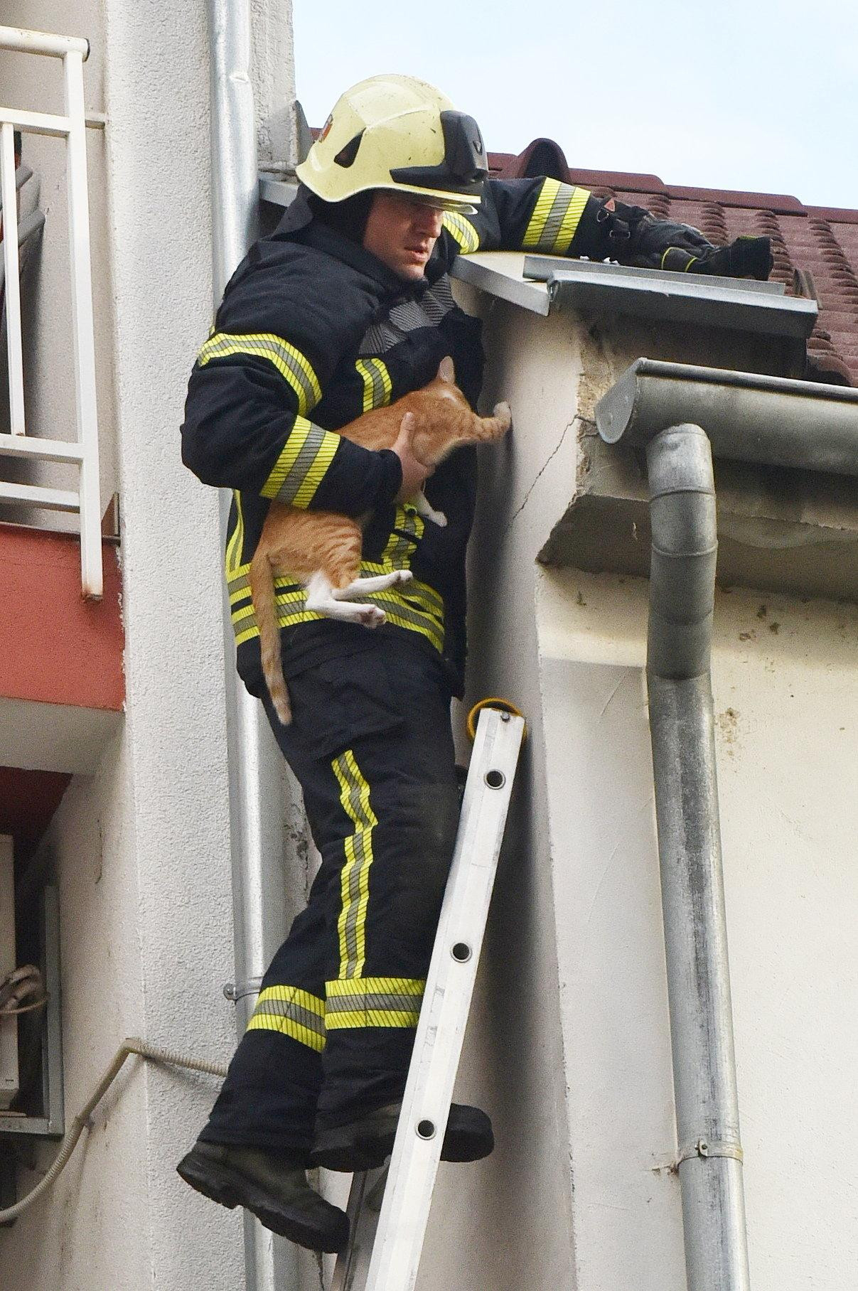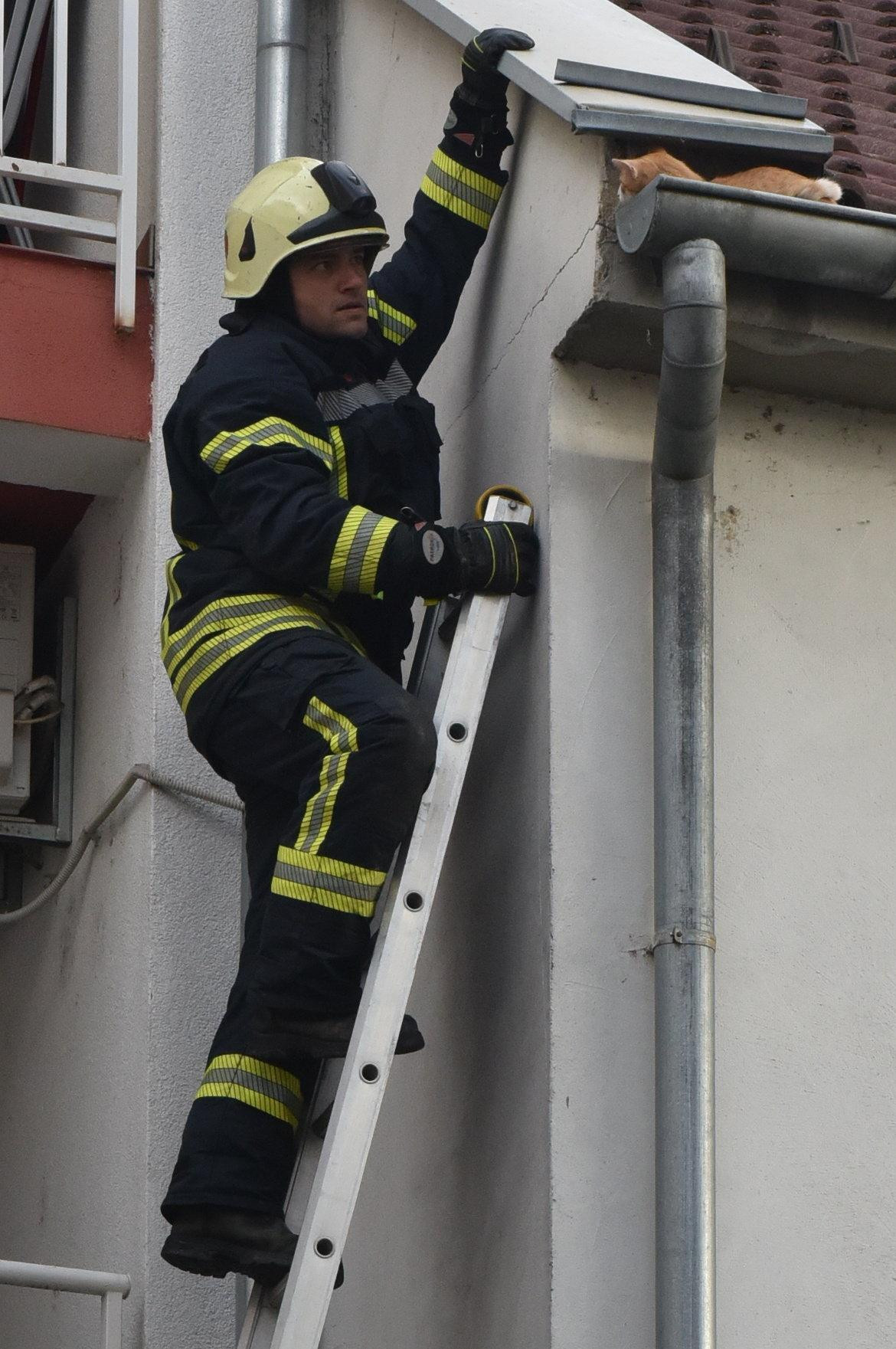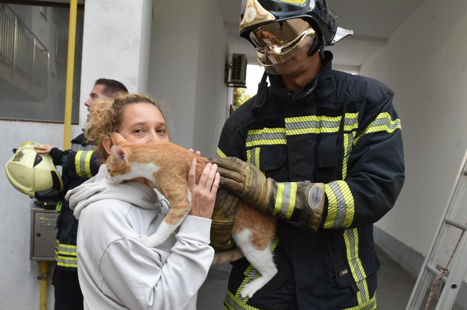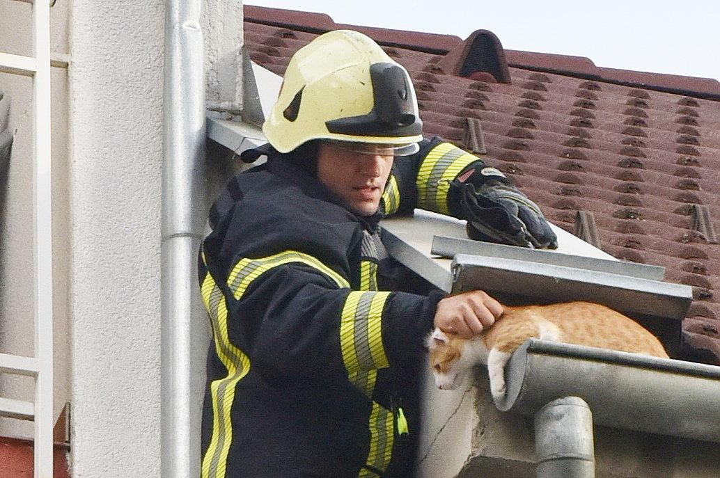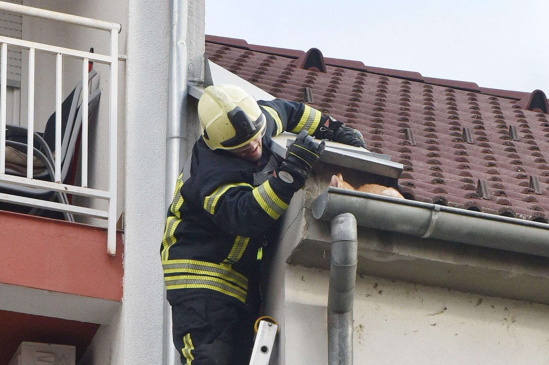 Što je namjeravala mačka iz ulice Matije Antuna Reljkovića, ne zna se. Je li gledala kakvu pticu ili se možda pad dogodio slučajno, ne zna se, no s balkona je pala na krov zgrade. Vlasnica je to vidjela i shvatila, istovremeno kad i mačka, da nema nikakvog načina da ljubimca vrati u stan nego da pozove vatrogasce u pomoć.