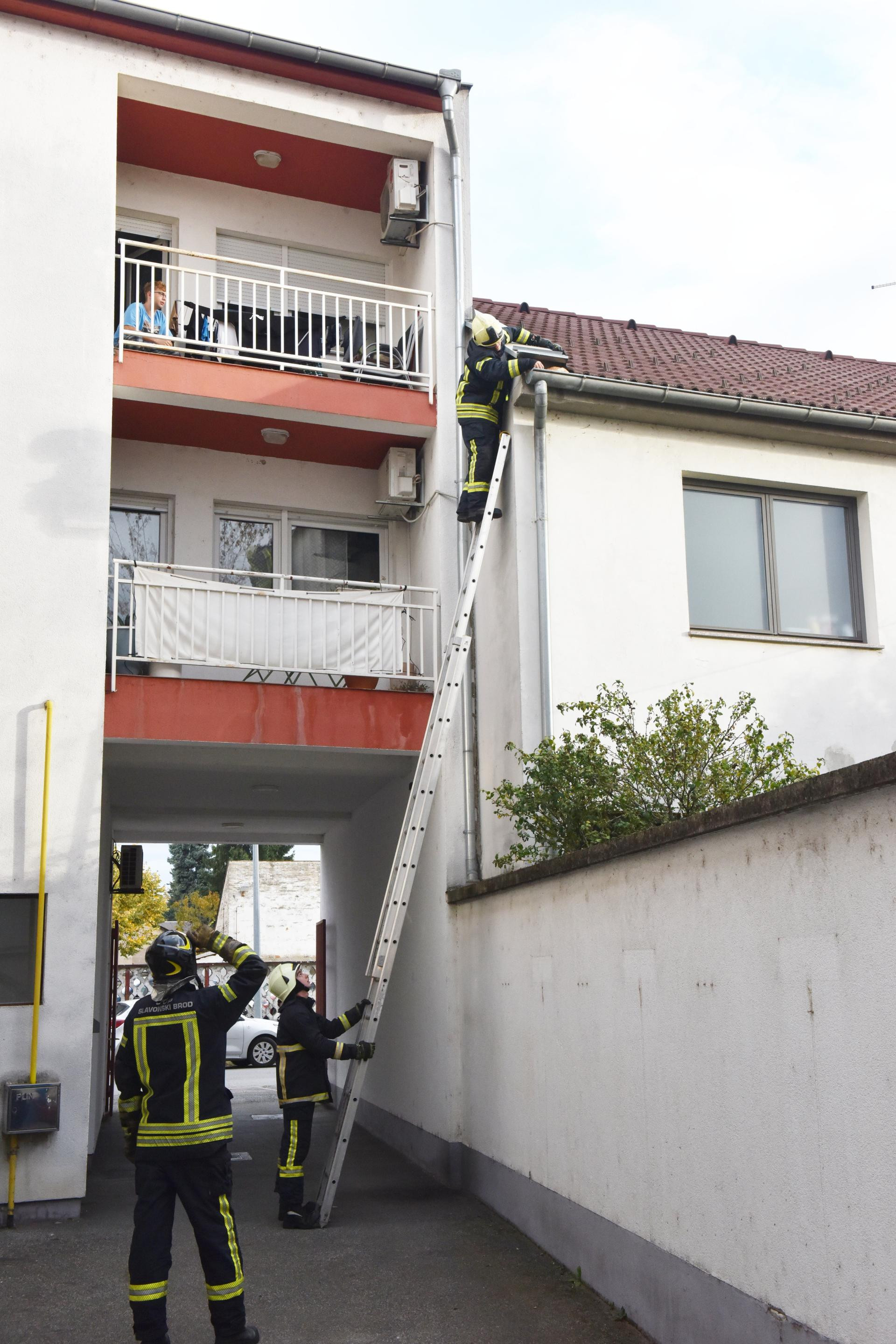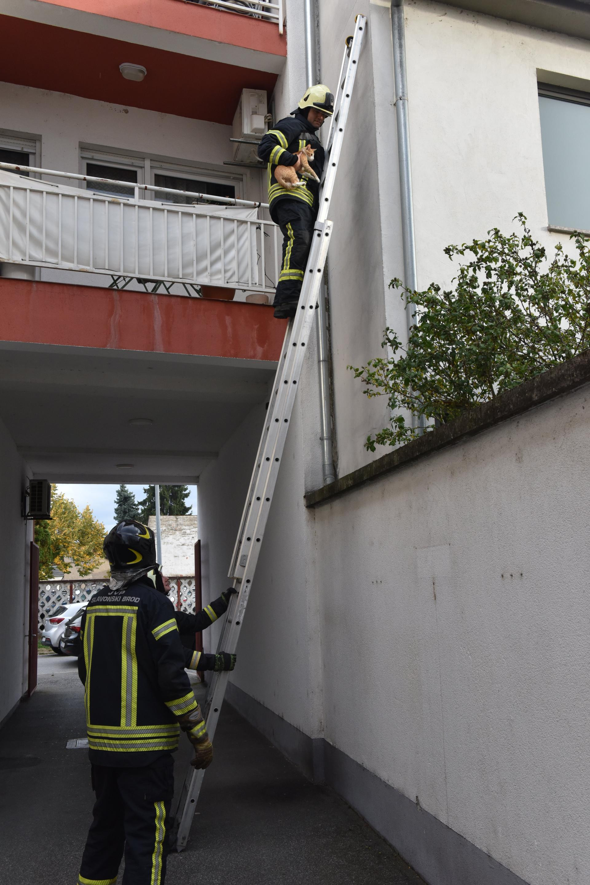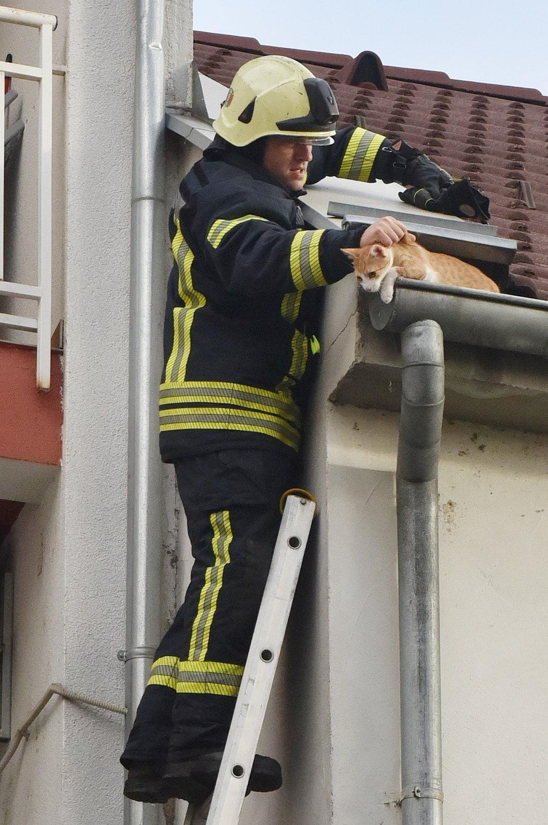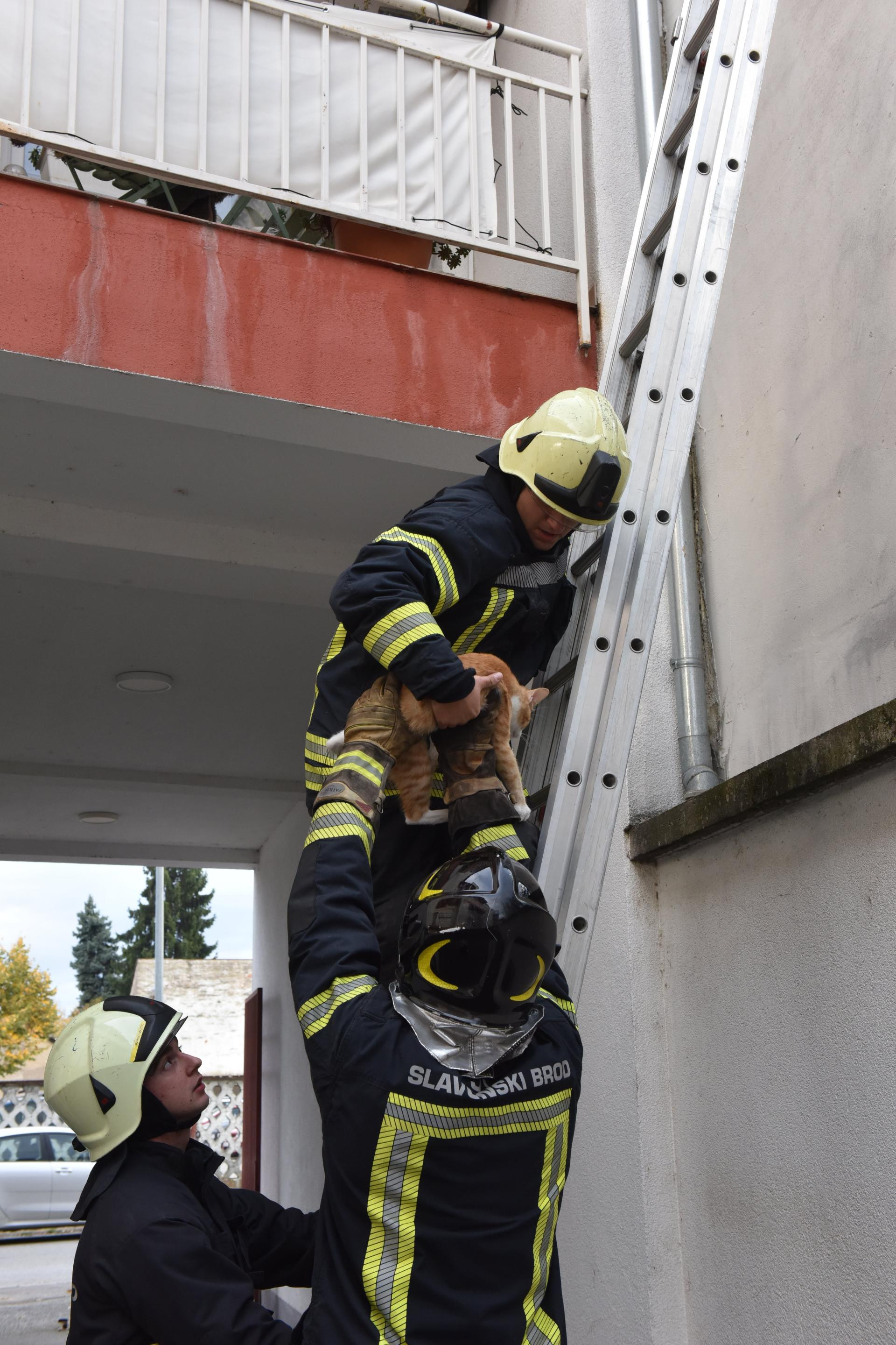 Što je namjeravala mačka iz ulice Matije Antuna Reljkovića, ne zna se. Je li gledala kakvu pticu ili se možda pad dogodio slučajno, ne zna se, no s balkona je pala na krov zgrade. Vlasnica je to vidjela i shvatila, istovremeno kad i mačka, da nema nikakvog načina da ljubimca vrati u stan nego da pozove vatrogasce u pomoć.