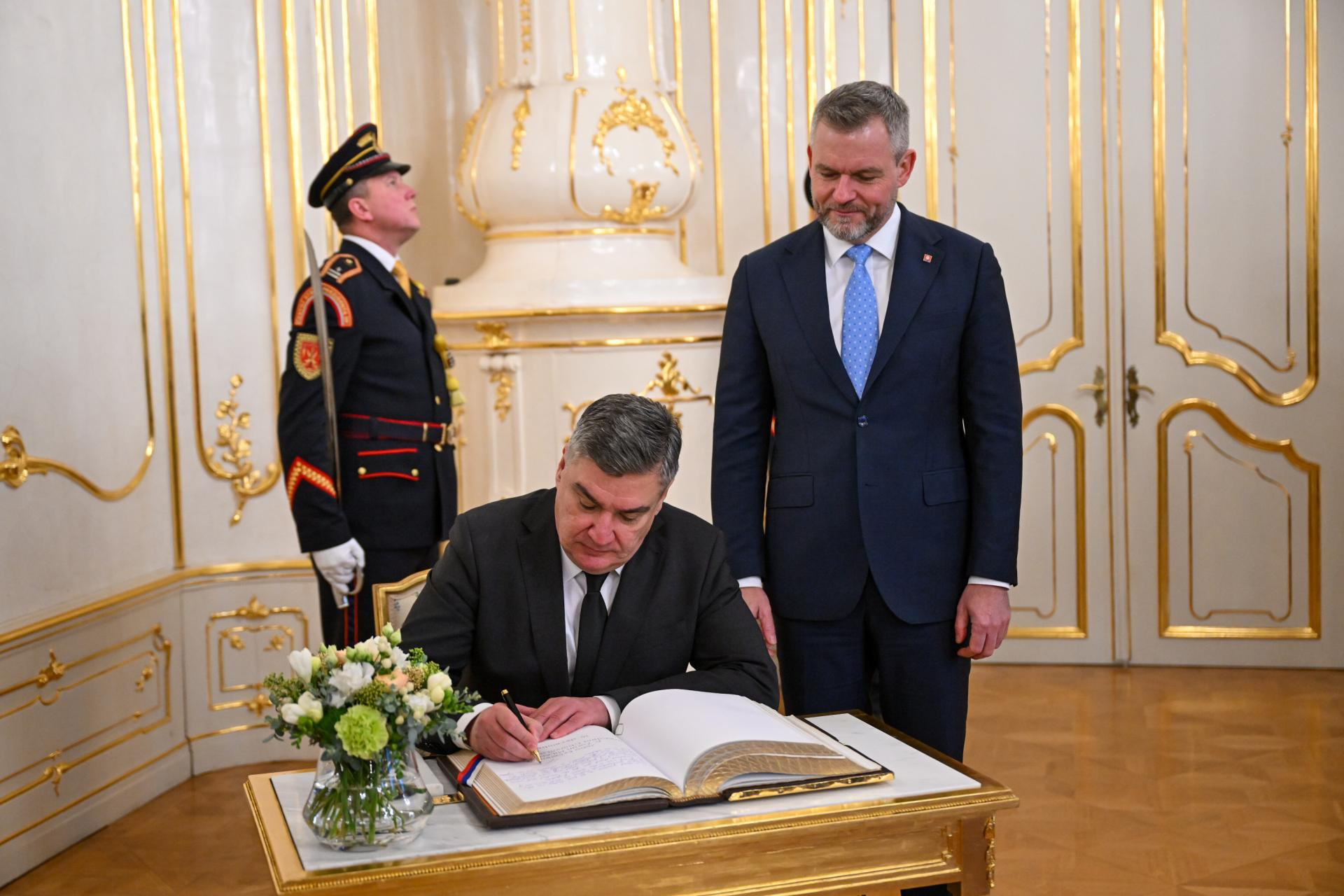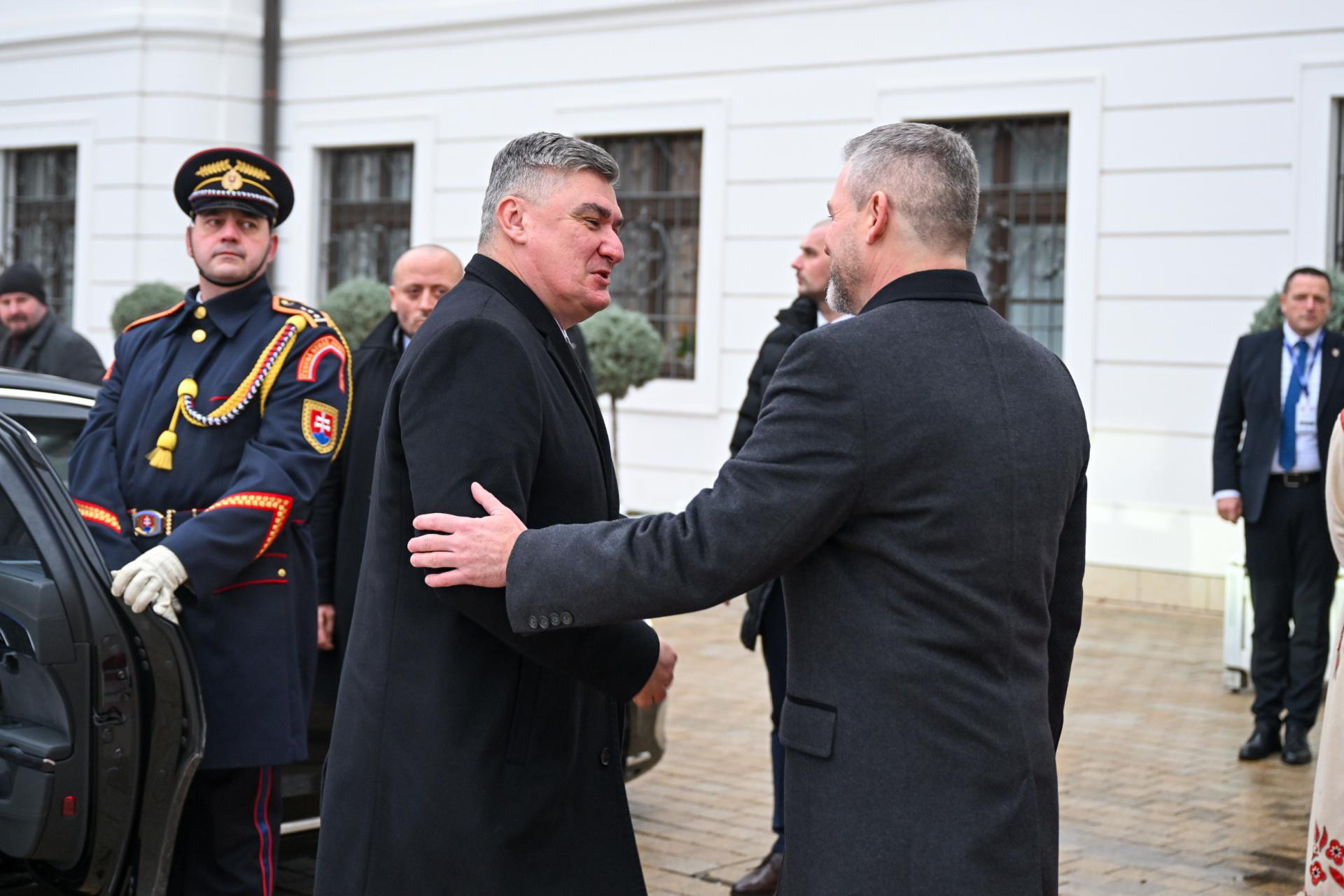 - Slovačka je jedna od država čije političko vodstvo pripada onima koji misle svojom glavom i imaju čvrst stav o nekim pitanjima. Nikako ne želim uvrijediti ili podcijeniti neke druge u Europi, ali Slovačka i njezini lideri se u tome ističu“, rekao je predsjednik Milanović te naveo kako je prije sastanka sa svojim domaćinom, predsjednikom Pellegrinijem, razgovarao i s premijerom Ficom.