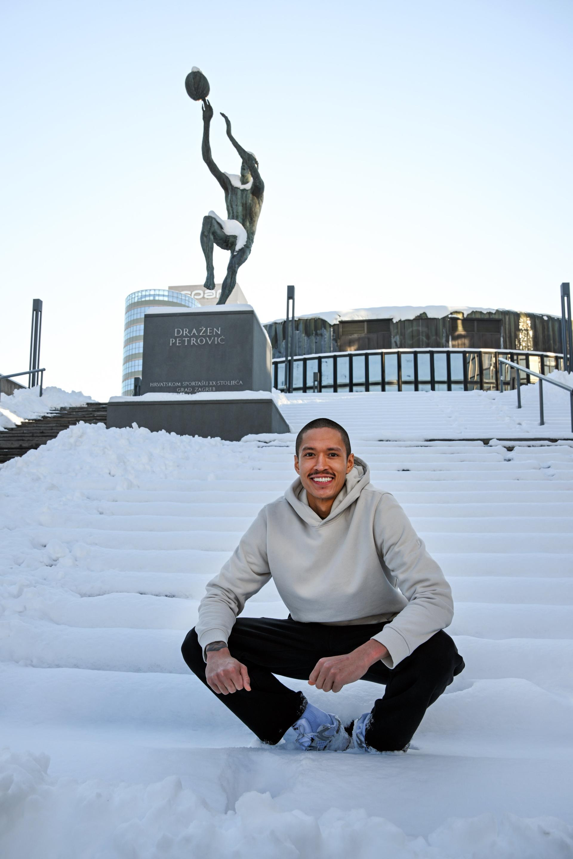 - Je l’ ti hladno? - bilo je to moje prvo pitanje za Kamaku Hepu, krilnog centra Cibone, koje sam mu postavio dok je iznenađujuće profesionalno pozirao Cropixovu objektivu ispred kipa Dražena Petrovića.