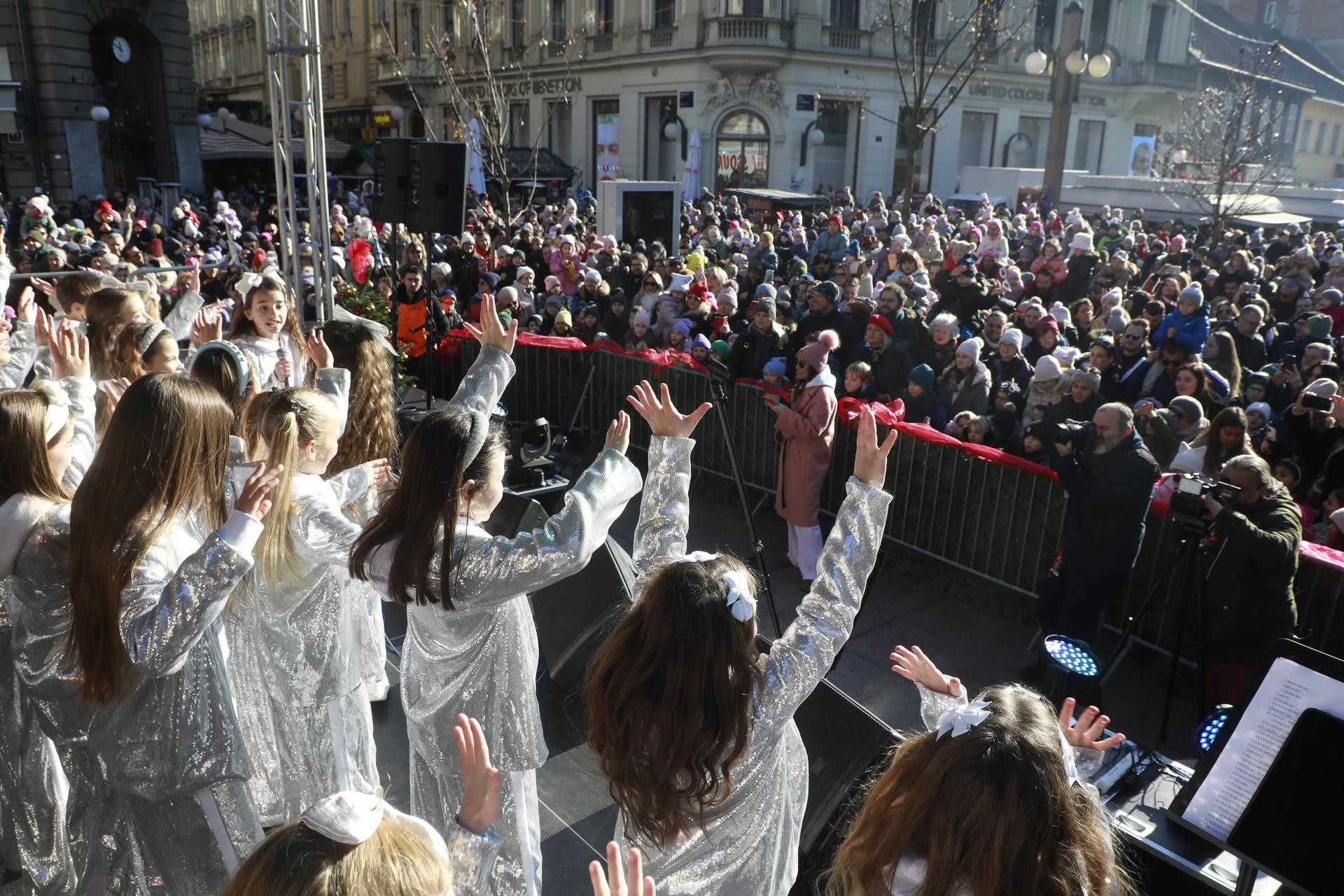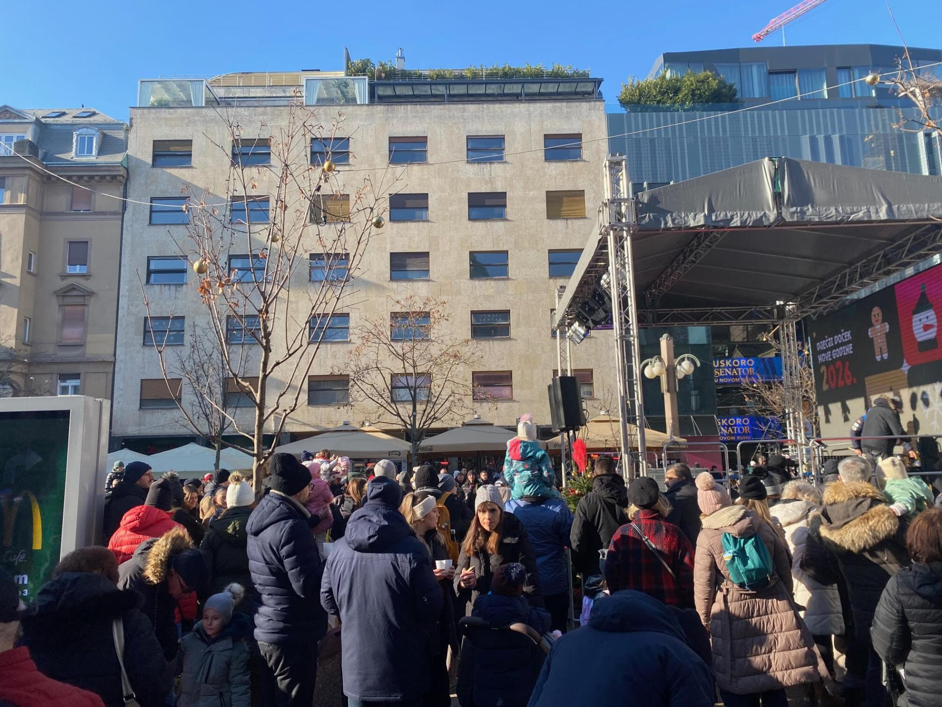 A dok se pune visoki stolovi barova, simultano slave i oni nešto manji, samo par koraka dalje. Naime, na Trgu Petra Preradovića trenutno se slavi i Dječji doček Nove godine s koncertom Bojana Jambrošića, a u zraku nastaje mikrofonija dječjeg krika s glazbom iz susjednih barova, ali i ponekim zvukovima s Trga bana Josipa Jelačića, na kojem se održavaju probe za večerašnji program.