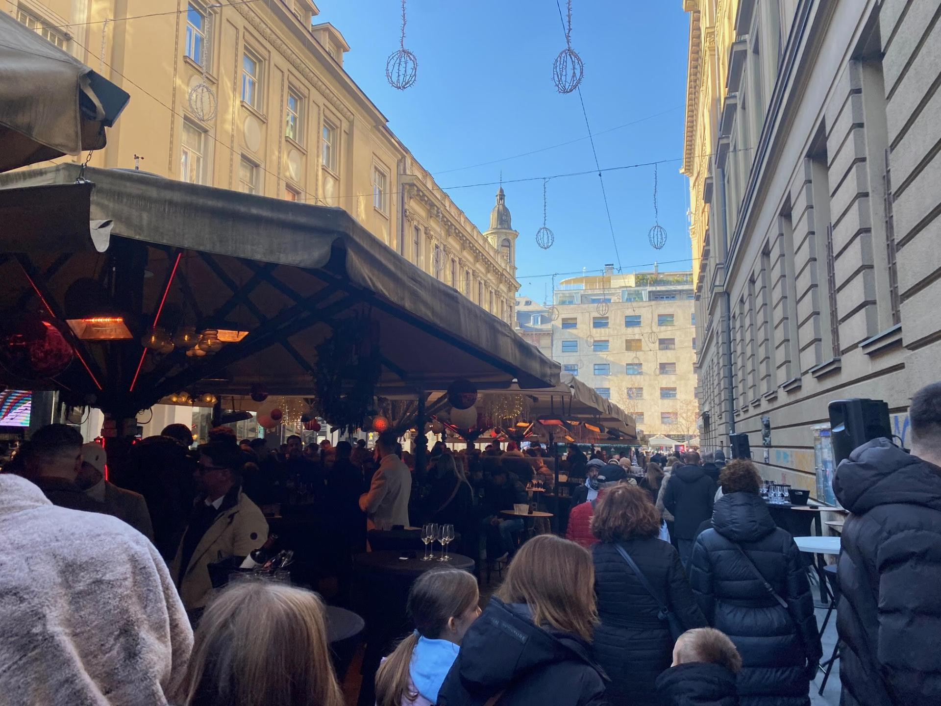 Zagrebačka špica već je puna; Silvestrovo u centru Zagreba tradicionalno privlači veliki broj građana, a stolovi kafića u Bogovićevoj već su gotovo popunjeni.