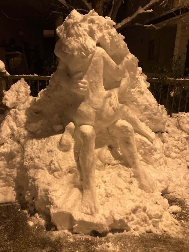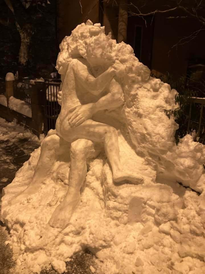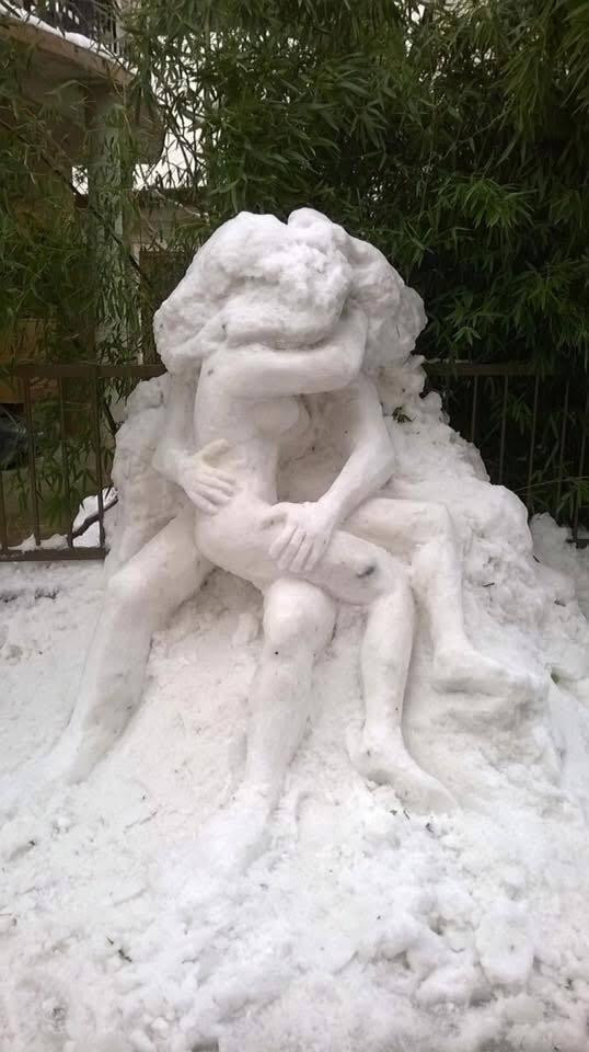 Ovi ljubavnici mu nisu ni prvi ni zadnji. Već godinama on, ako ga snijeg posluži, oblikuje erotične prizore koji unose toplinu u mrzli krajolik.