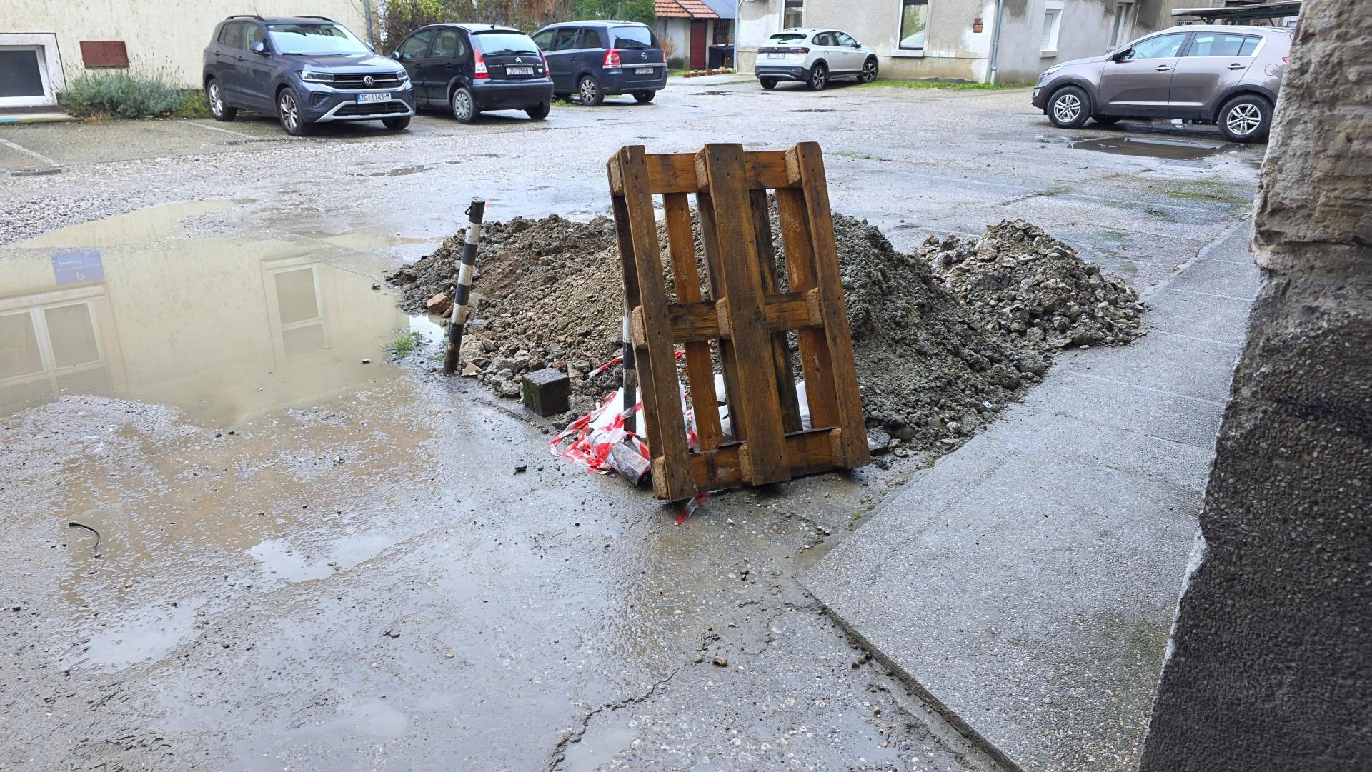 Voda iz cijevi namočila je i sam ulaz u dvorište koji je zbog radova blatnjav i sklizak, na što su nas Trešnjevčani prilikom ulaska i upozorili.
