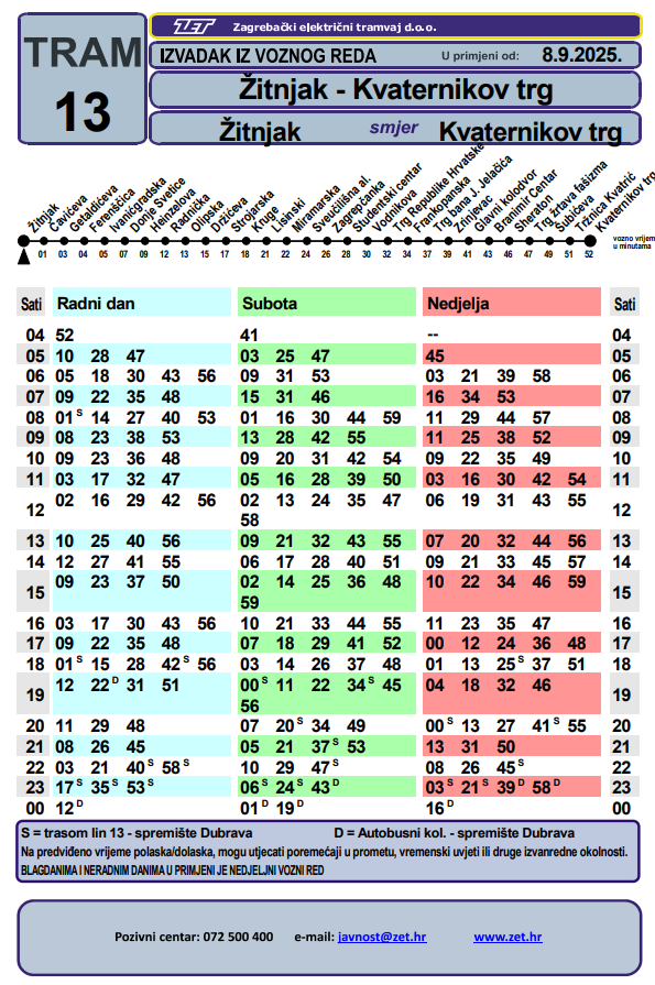 Nakon kojih 15 minuta, na našoj se stanici pojavljuje tramvaj na liniji 3, a odmah iza njega se sramežljivo skriva onaj na liniji 13. Po rasporedu, liniji 3 treba točno pet minuta do već spomenute stanice Žitnjak, odakle na svoj put kreće linija 13. Ipak, iz ZET-a su paradoksalno namjestili polaske tako da se dva tramvaja na toj stanici nađu u praktički istom vremenu, nakon čega slijedi prozor od 15 minuta bez ikakvih polazaka tramvaja, sve dok se dva tramvaja opet gotovo istovremeno ne pojave na istoj stanici i krenu, ponavljamo, rutama koje se izrazito preklapaju.
